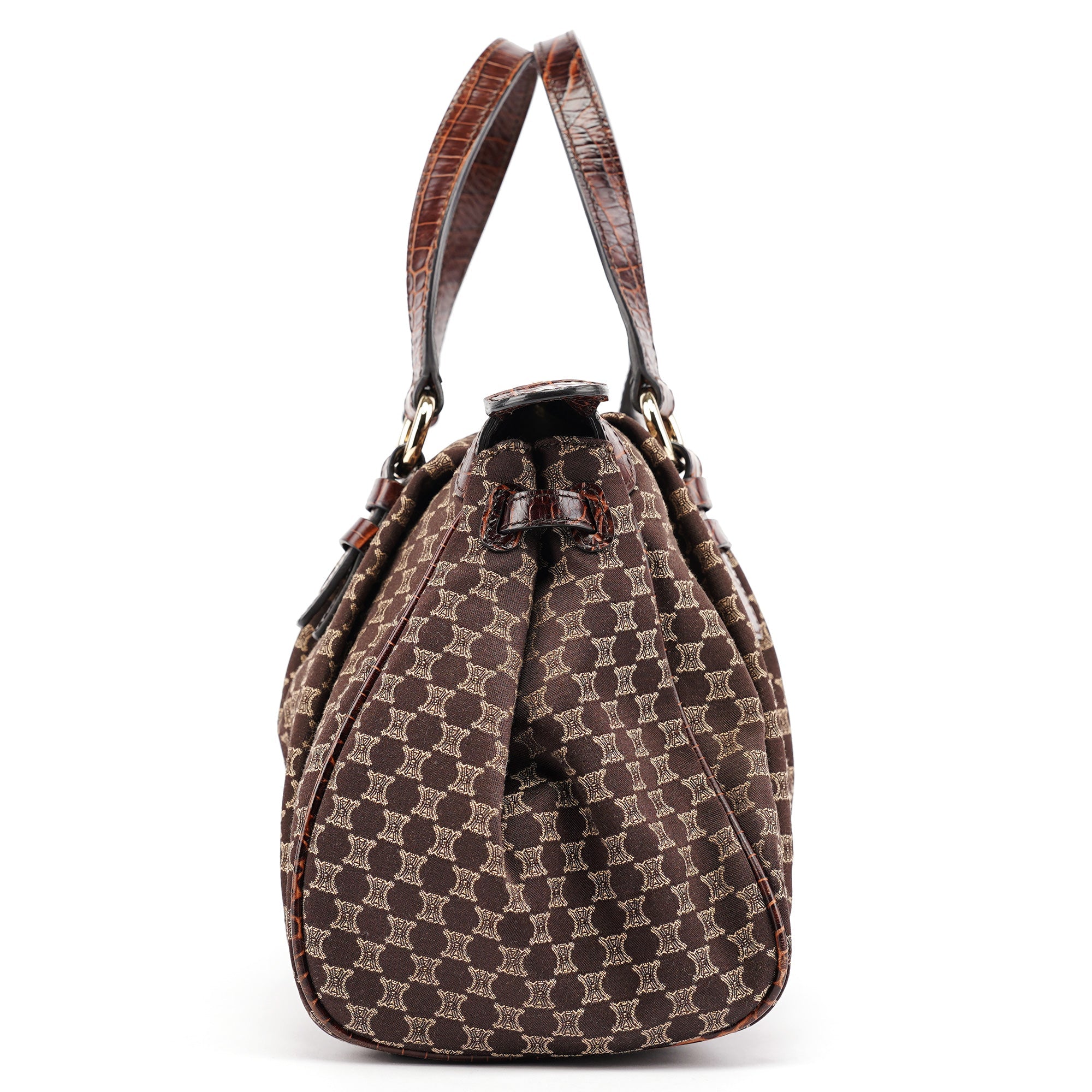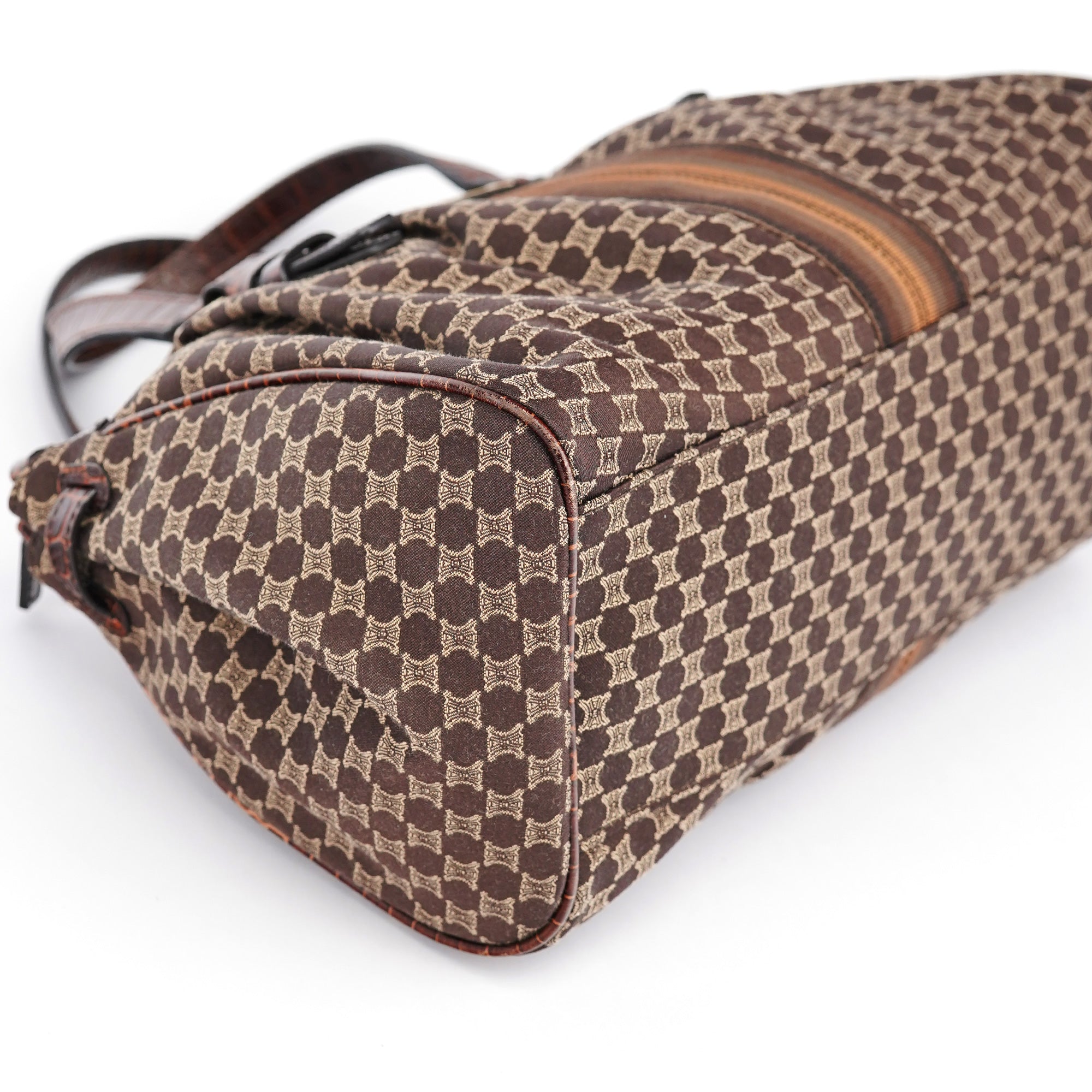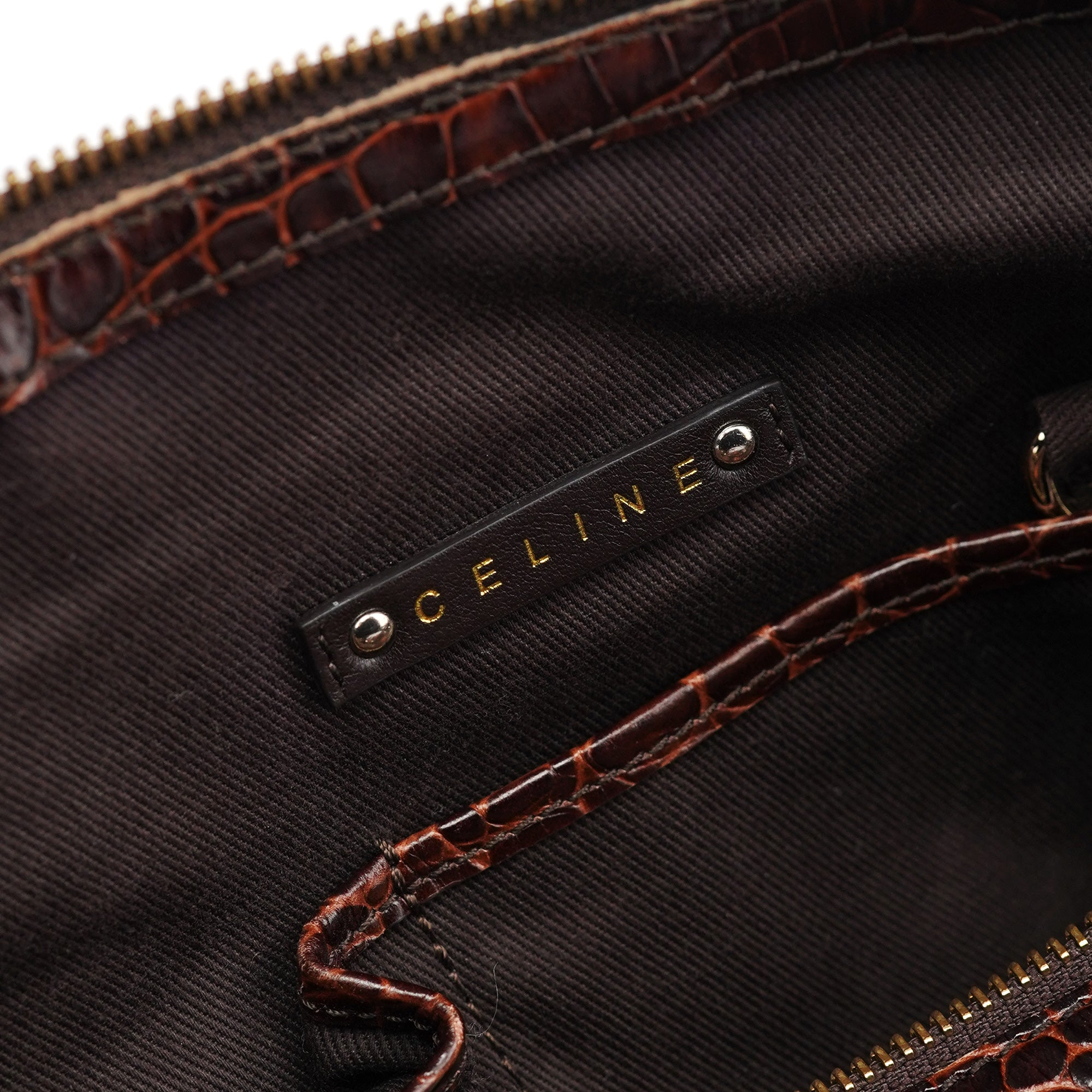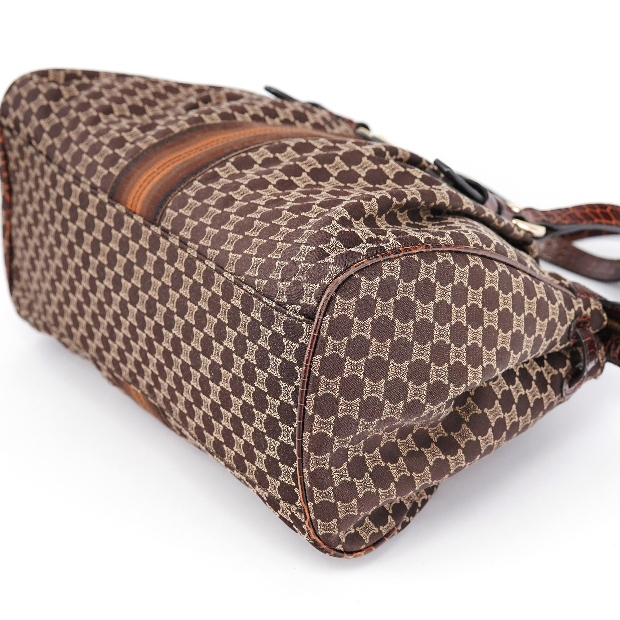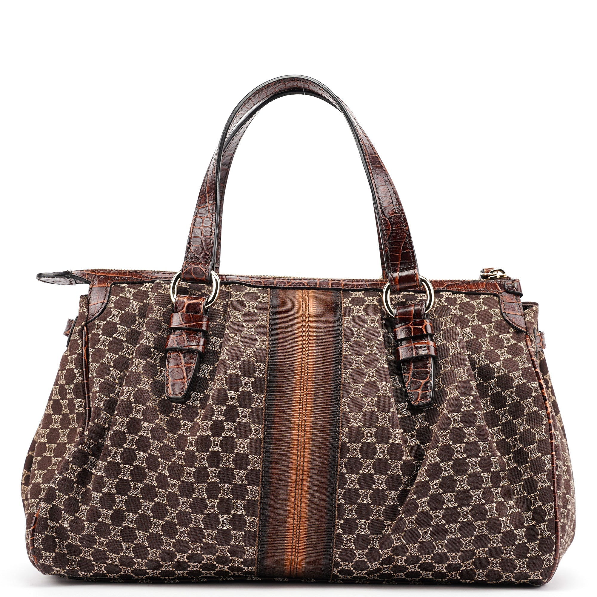 Designed in the early 2000s, this Céline Triumph tote bag is crafted from classic Triomphe monogram with brown croc-embossed leather. The spacious silhouette features dual rolled top handles, a refined zip-top closure, and opens to a canvas-lined interior equipped with a single zip pocket.
