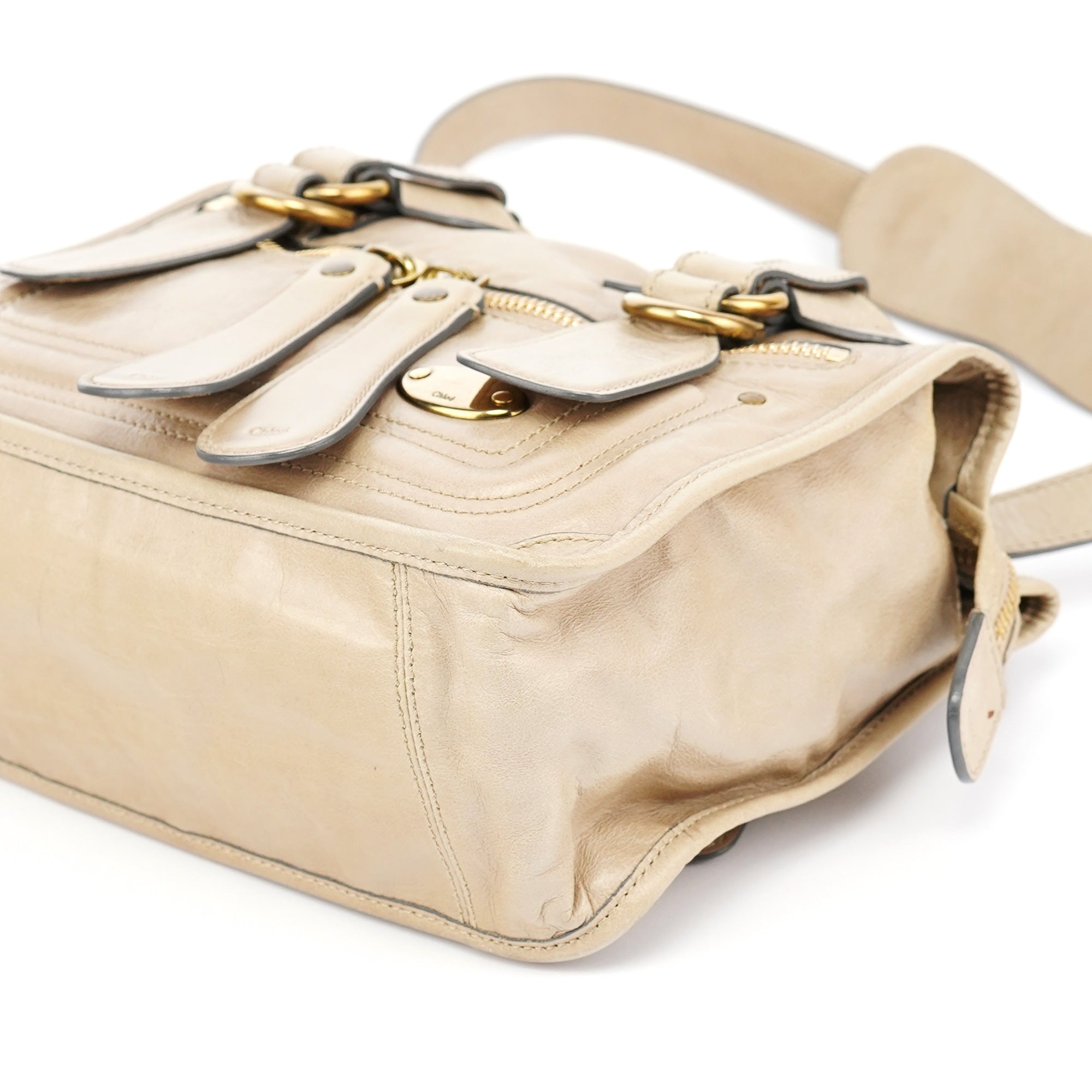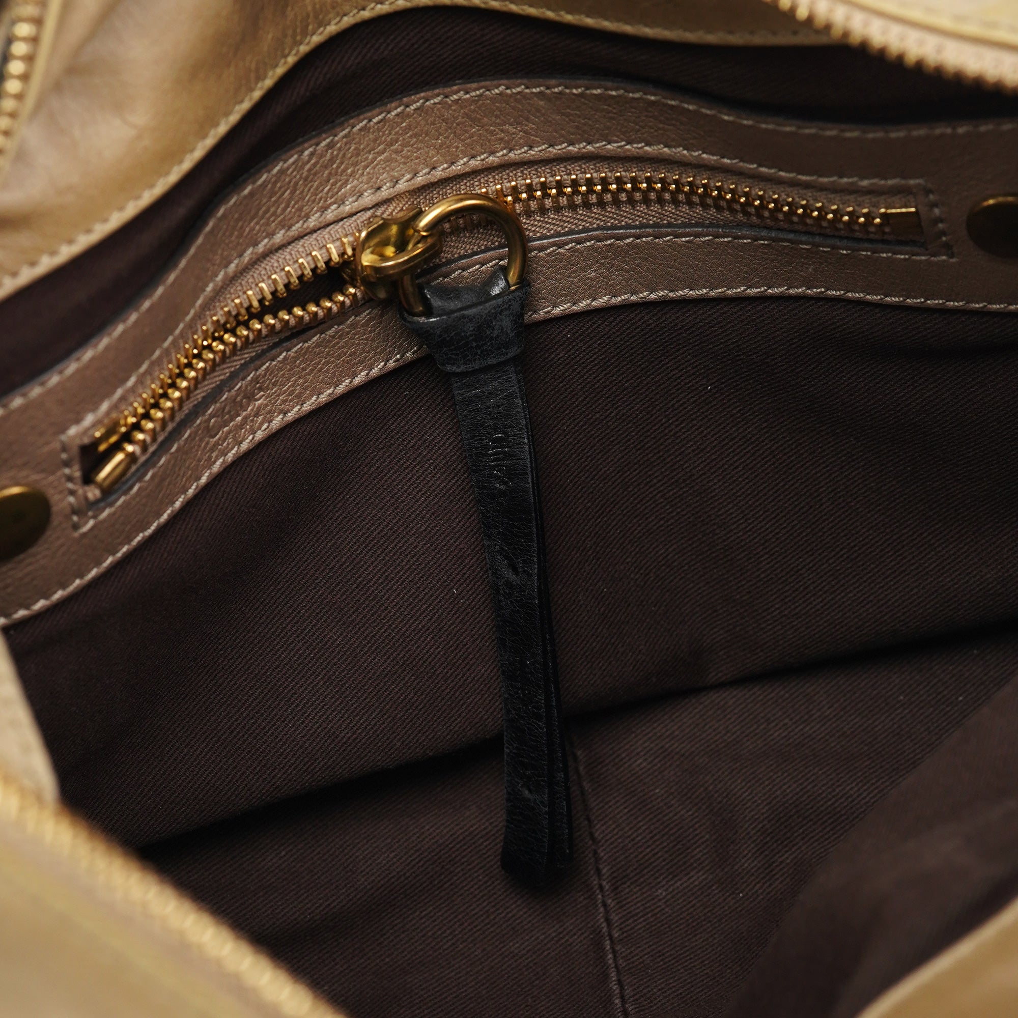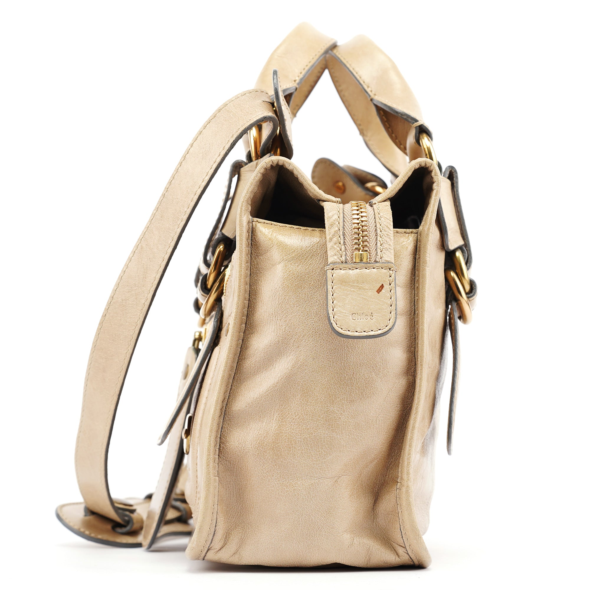 Designed in the early 2000s by Phoebe Philo, this vintage Chloé Bay 2-Way tote bag showcases the designer's refined approach to luxurious everyday elegance. Crafted in smooth beige leather with a structured silhouette, the bag features distinctive wrapped leather handles, gold-tone zipper hardware, and a front zip pocket detail. The interior is lined in cotton fabric with a single compartment.