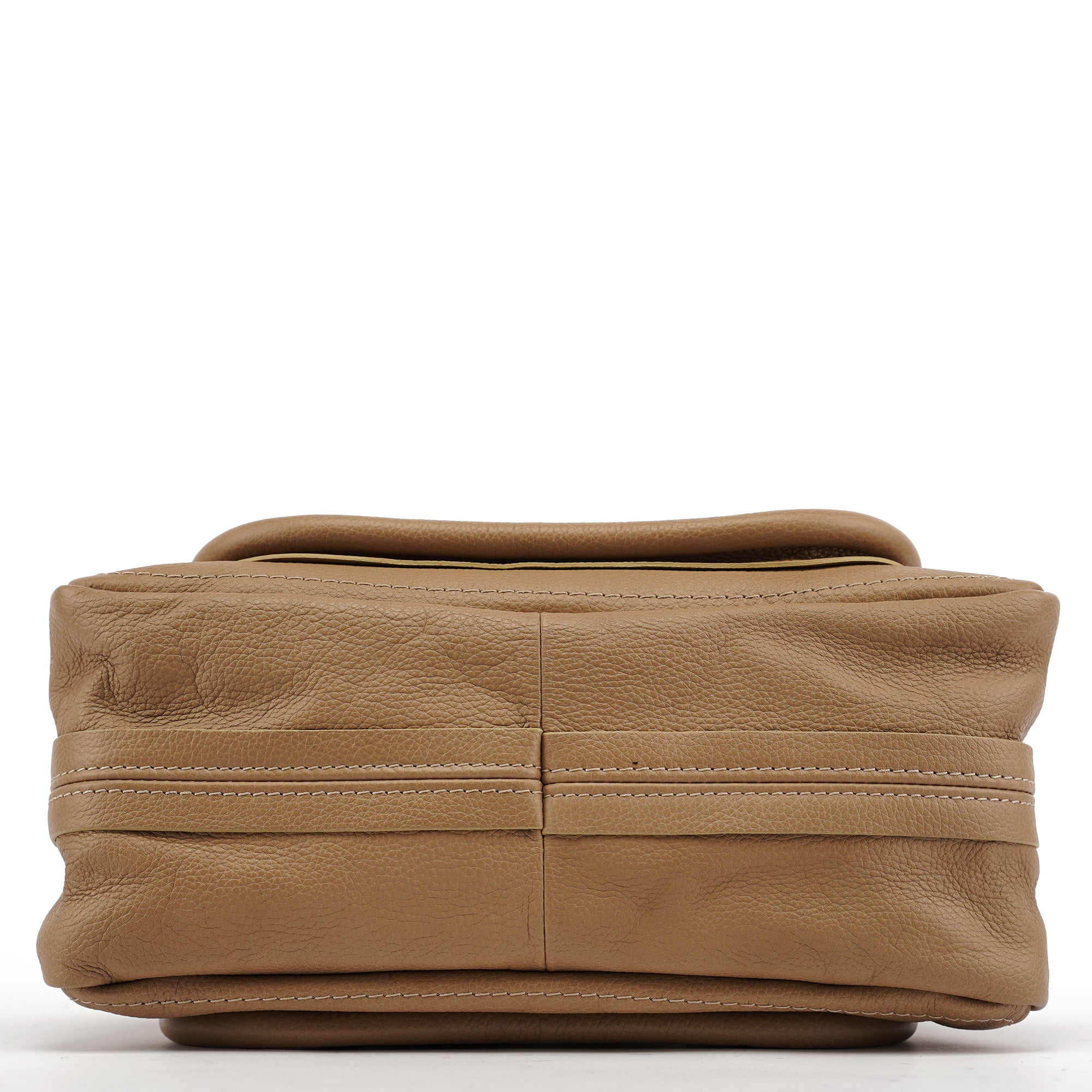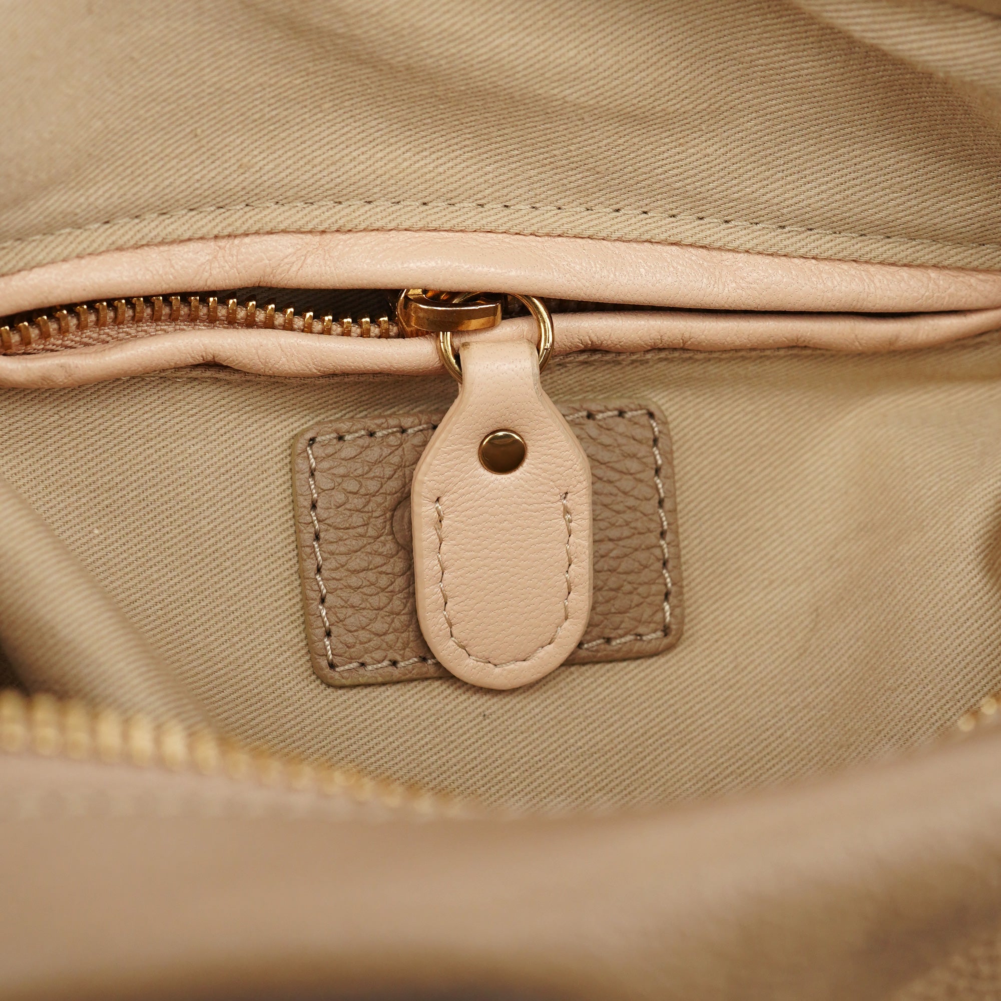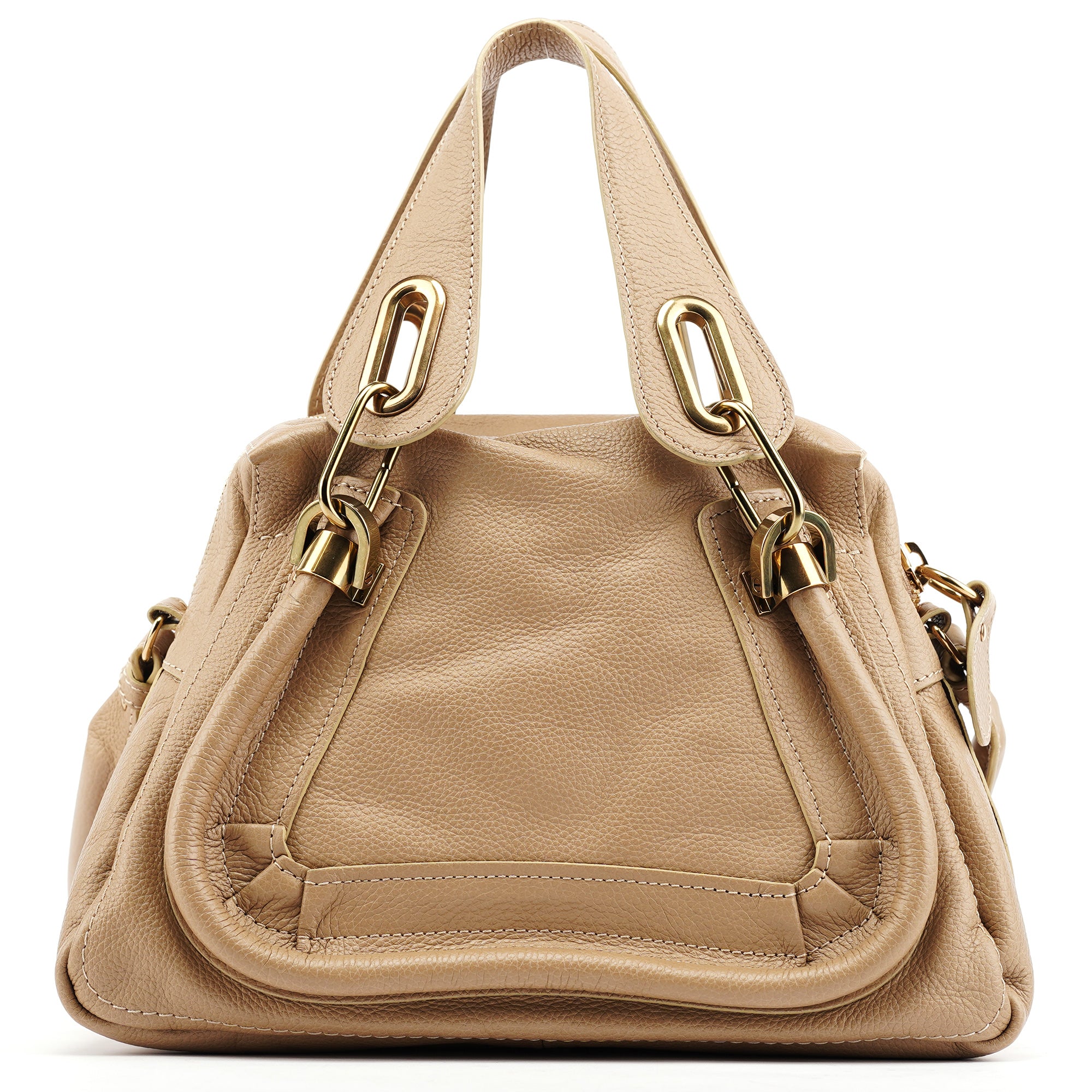 Designed in 2008 by Hannah McGibbon, this vintage Chloé Paraty bag features supple beige leather in a distinctive slouchy silhouette with dual rolled top handles and a detachable shoulder strap for versatile carry. The bag secures with a wraparound zipper closure and features gold-tone hardware throughout. Inside, the fabric-lined interior offers one open pocket and one zipper pocket for organized storage.