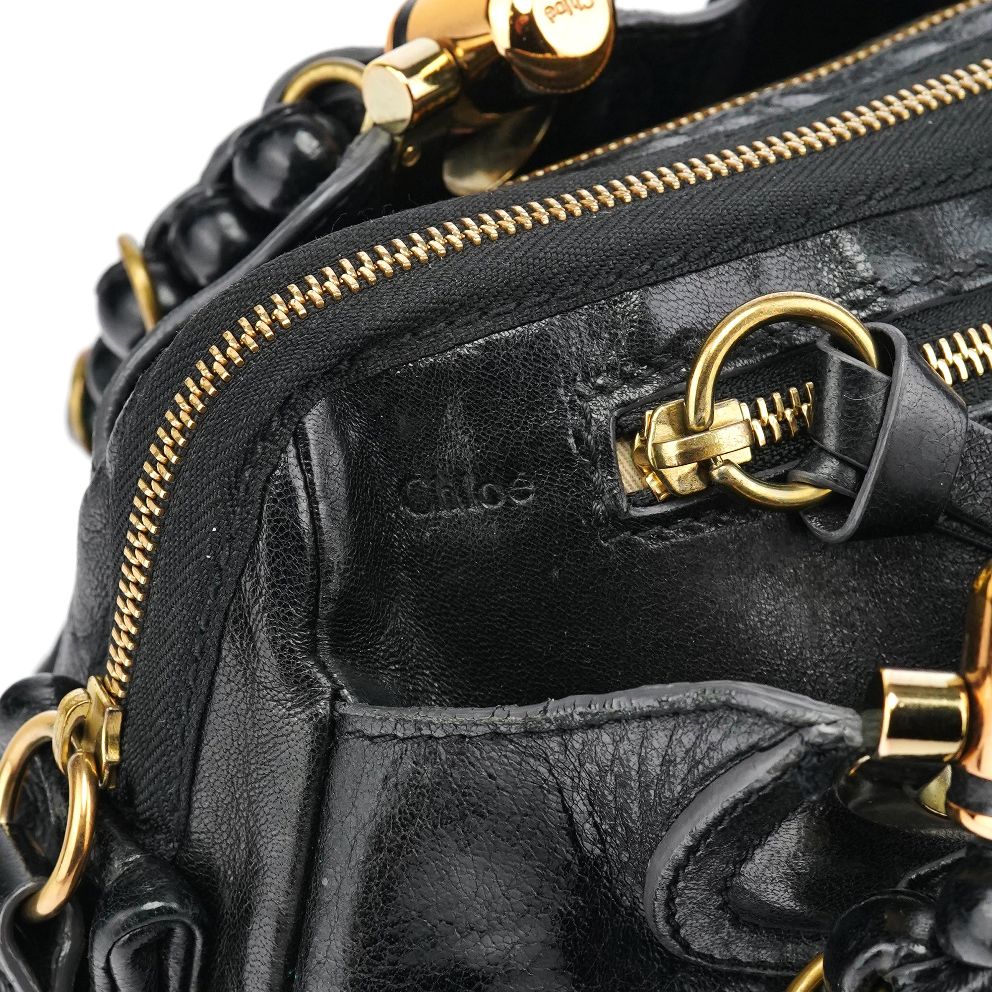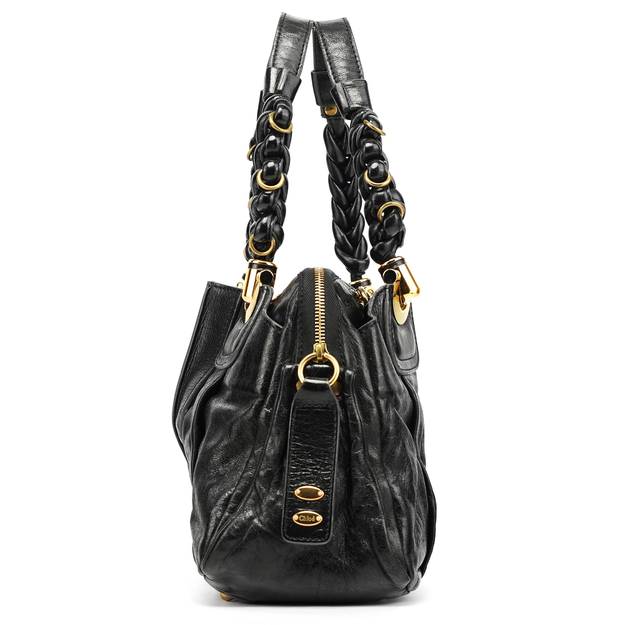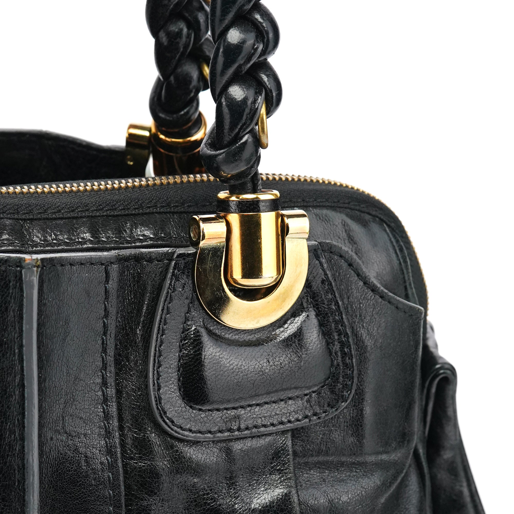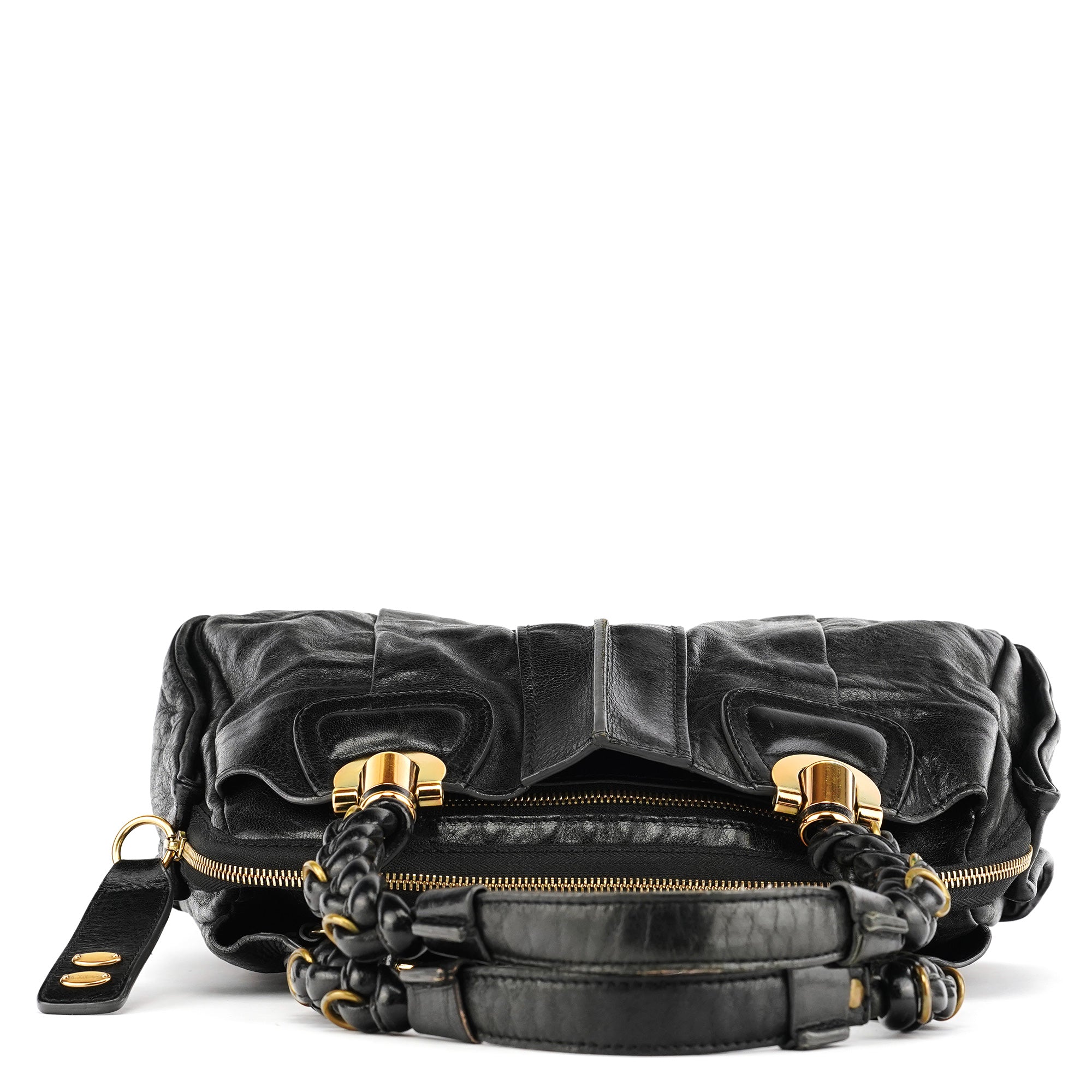 Designed in the early 2000s by Phoebe Philo, this Chloé Heloise tote is crafted in black leather with gold-tone hardware and braided leather handles. The interior is divided into three compartments, designed for structured everyday use.