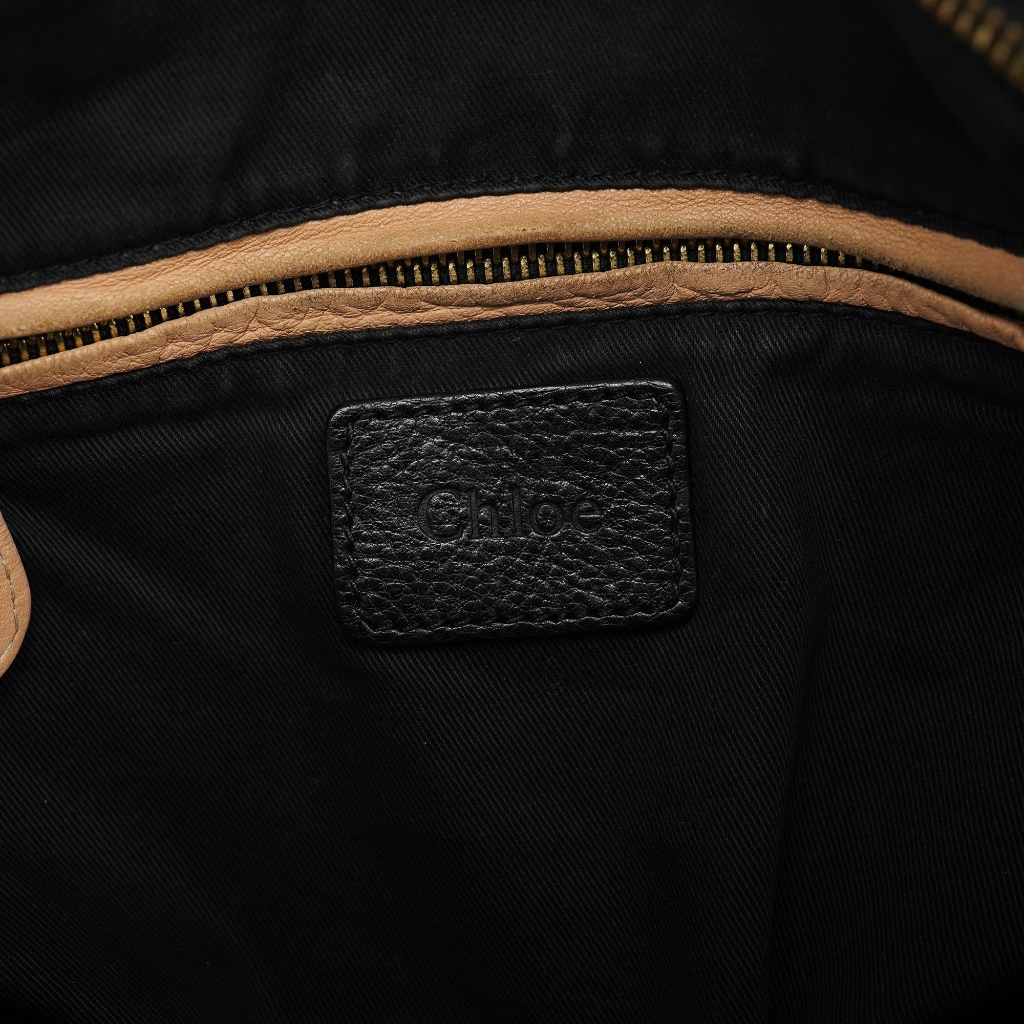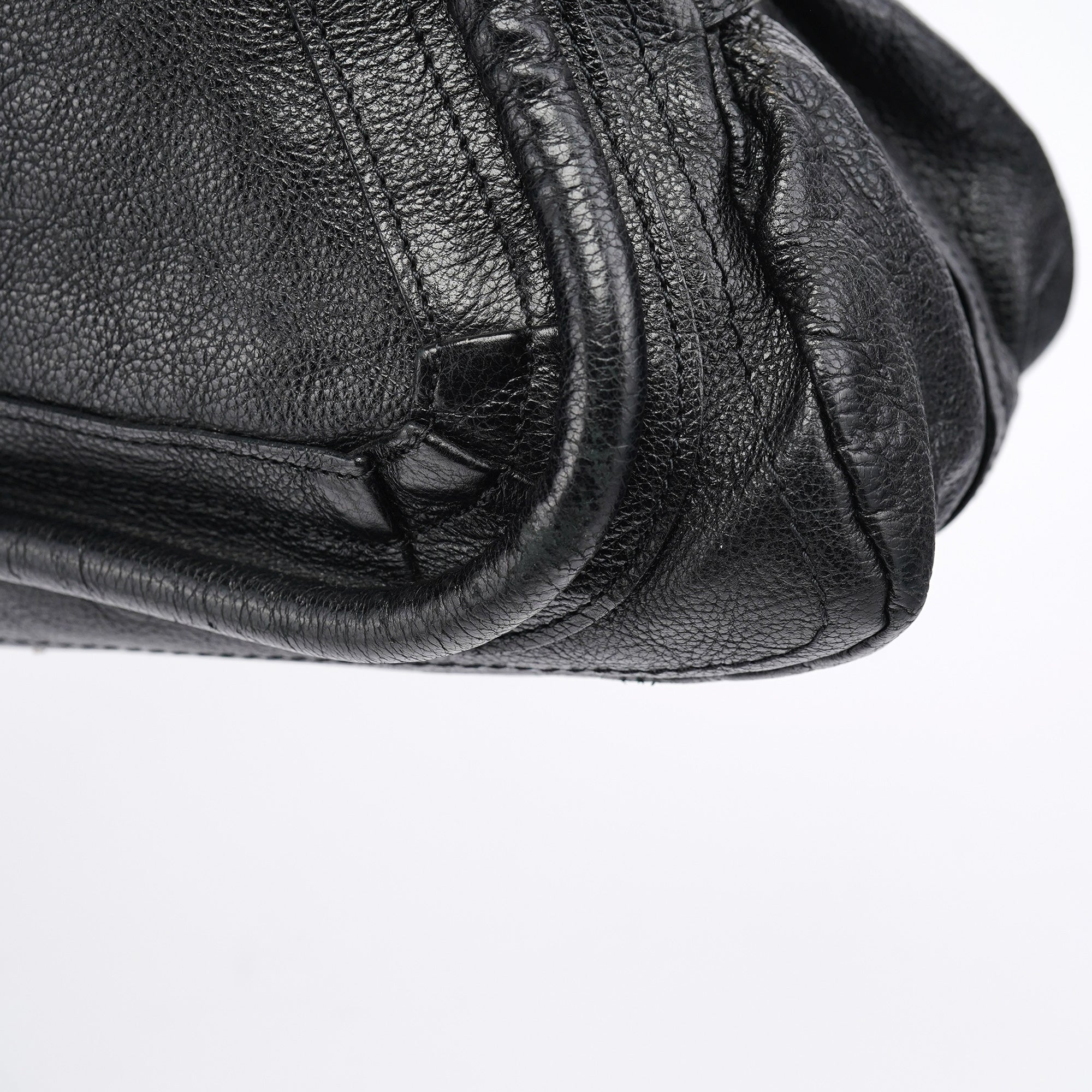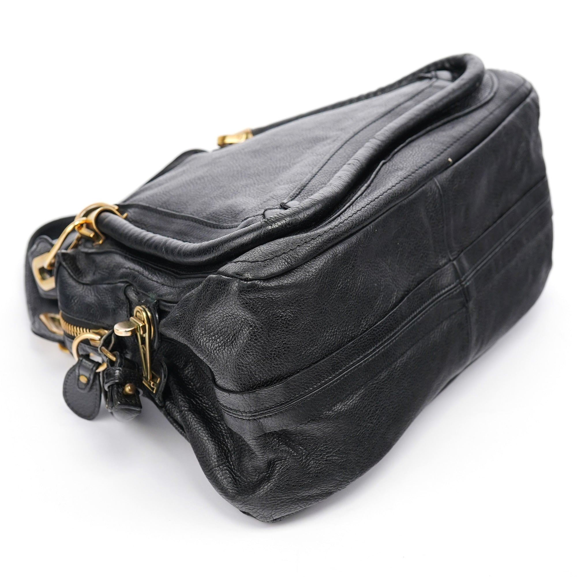 Designed in 2008 by Hannah MacGibbon, this vintage Chloé Paraty shoulder bag showcases the brand's signature bohemian-luxe aesthetic in supple black leather. The distinctive saddlebag silhouette features contrast stitching, brass-toned hardware including the characteristic double zip closure, and a spacious interior. The bag offers versatile 2-way styling with both shoulder and hand-carry options.