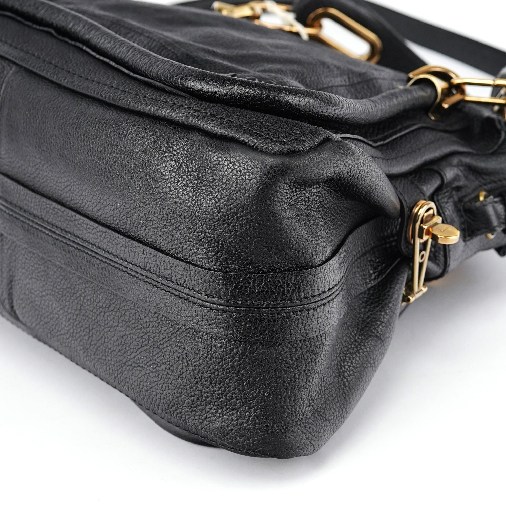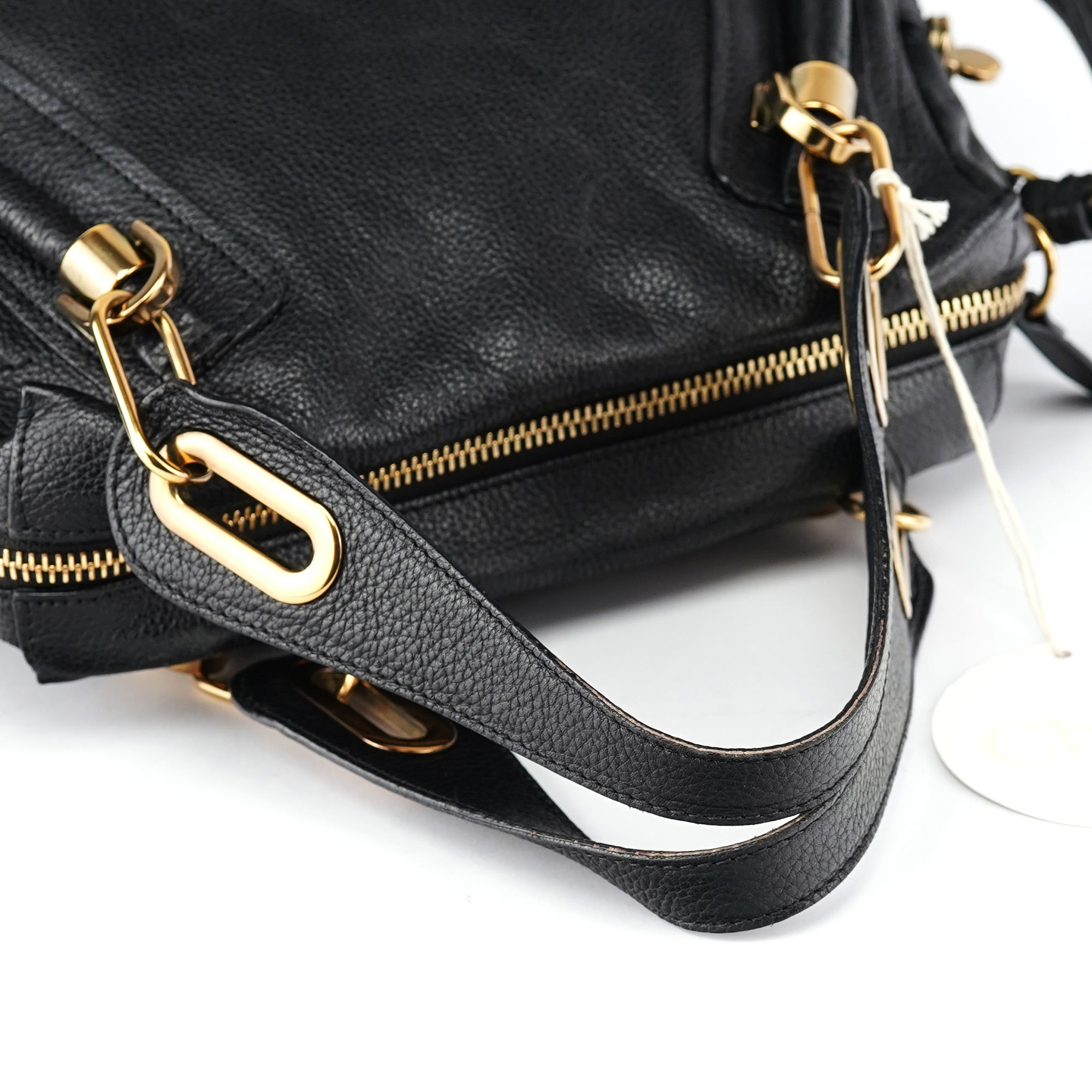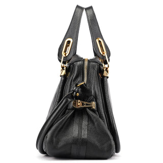Designed by Hannah MacGibbon in 2008, the Chloé Paraty bag became an instant classic with its structured silhouette and luxurious black leather. Featuring gold-tone hardware, rolled leather handles, and a detachable shoulder strap, it balances refined elegance with everyday functionality. The spacious zippered interior enhances practicality, embodying Chloé’s signature bohemian-luxe aesthetic.