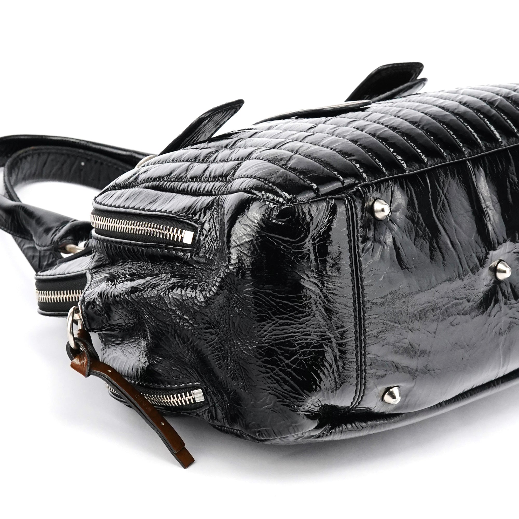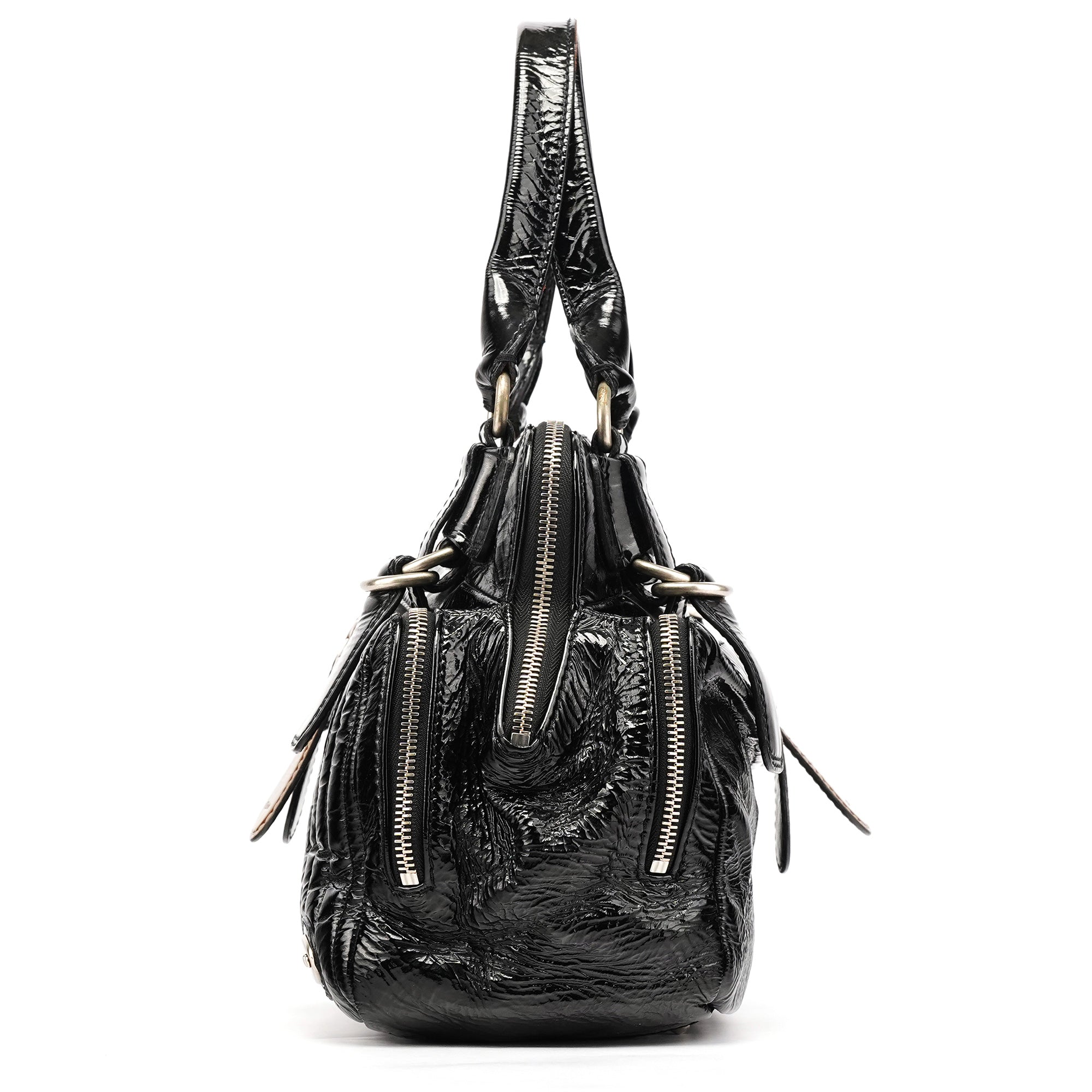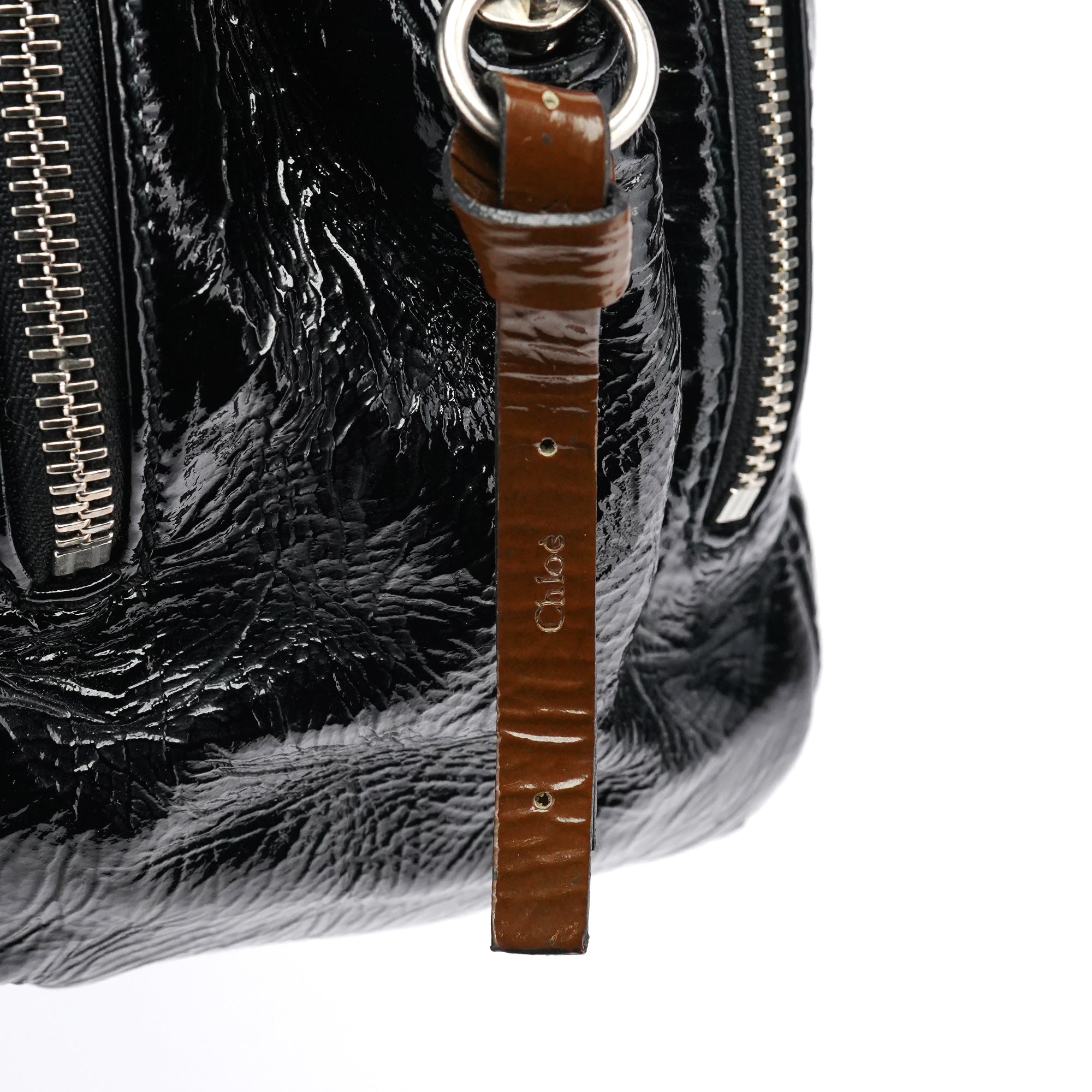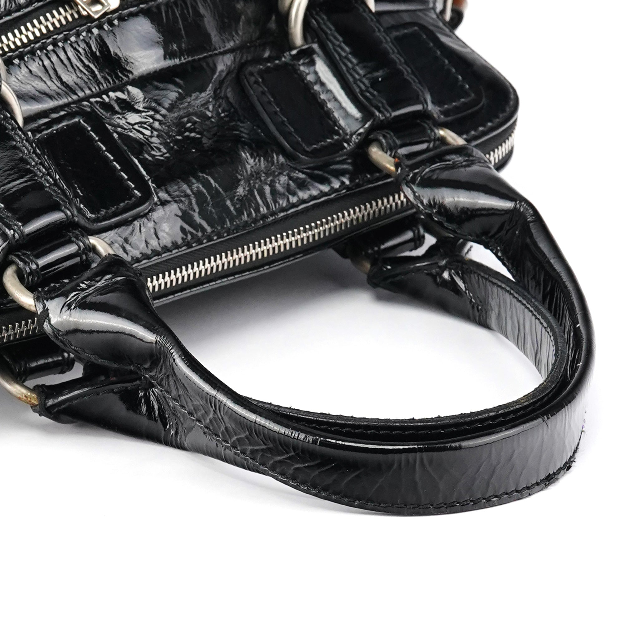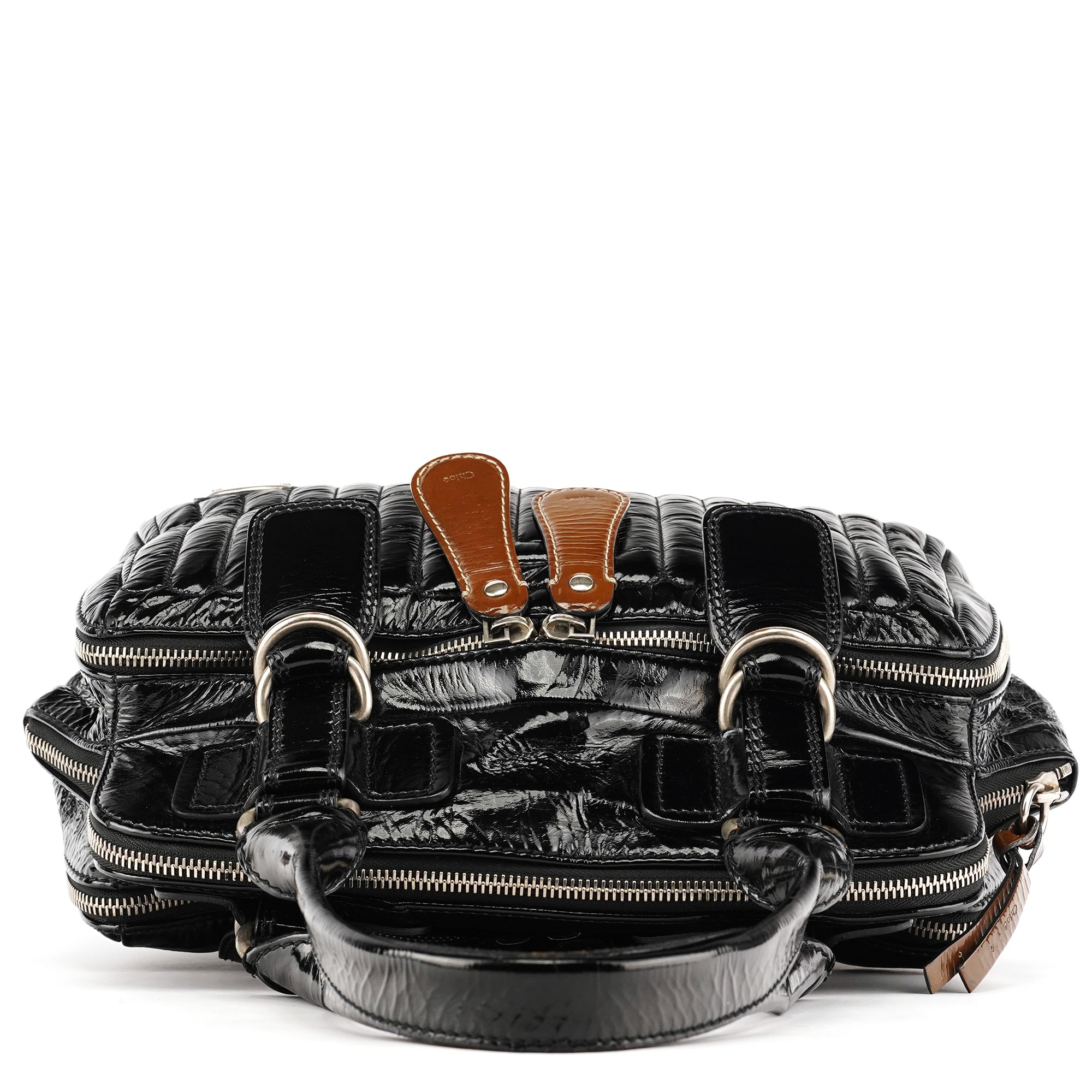 Designed by Phoebe Philo in the early 2000s, the Chloé Bay bag embodies timeless elegance with practical features. Handcrafted in premium patent leather, it showcases contrasting hardware and multiple exterior zippered compartments. Dual handles offer comfortable carrying, while the cotton-lined interior including zippered pocket ensures functional storage.