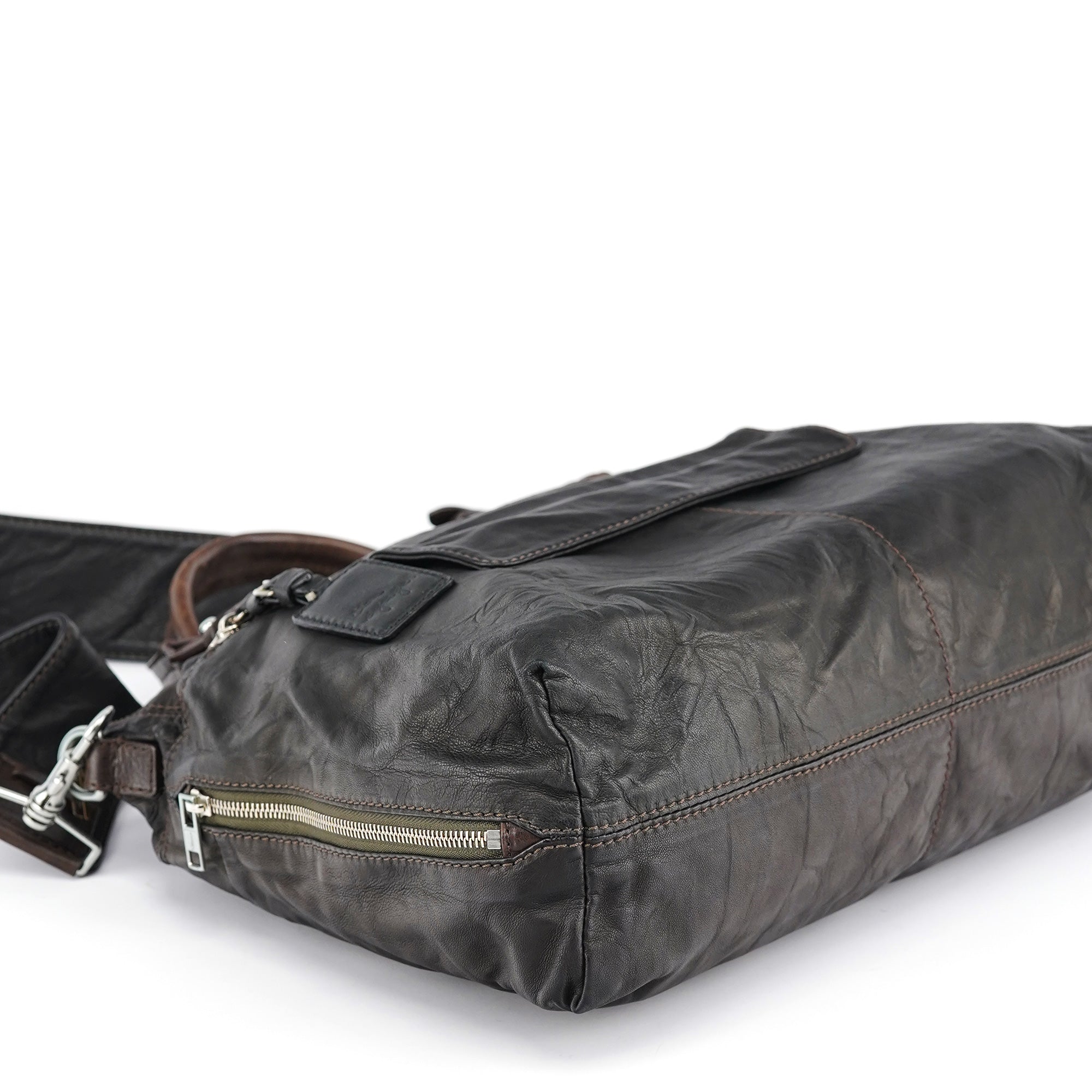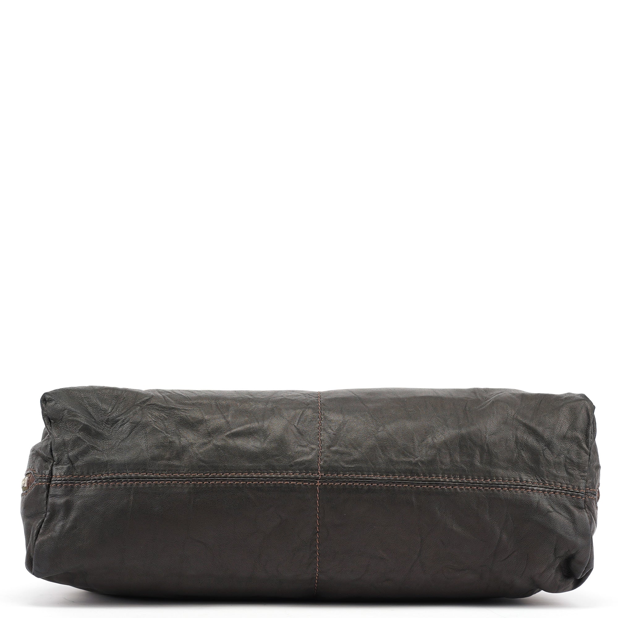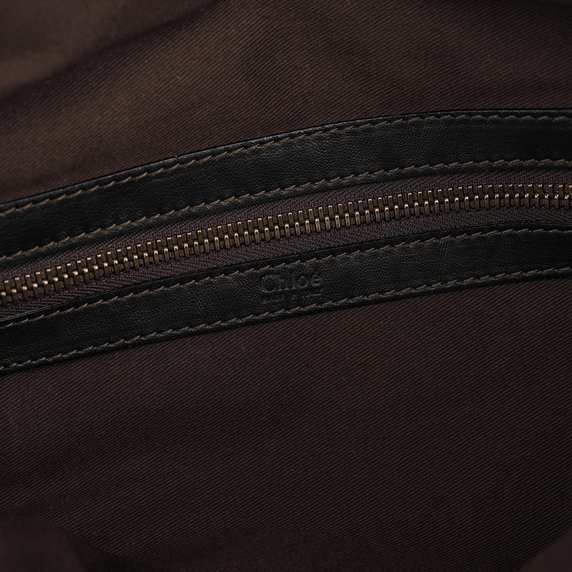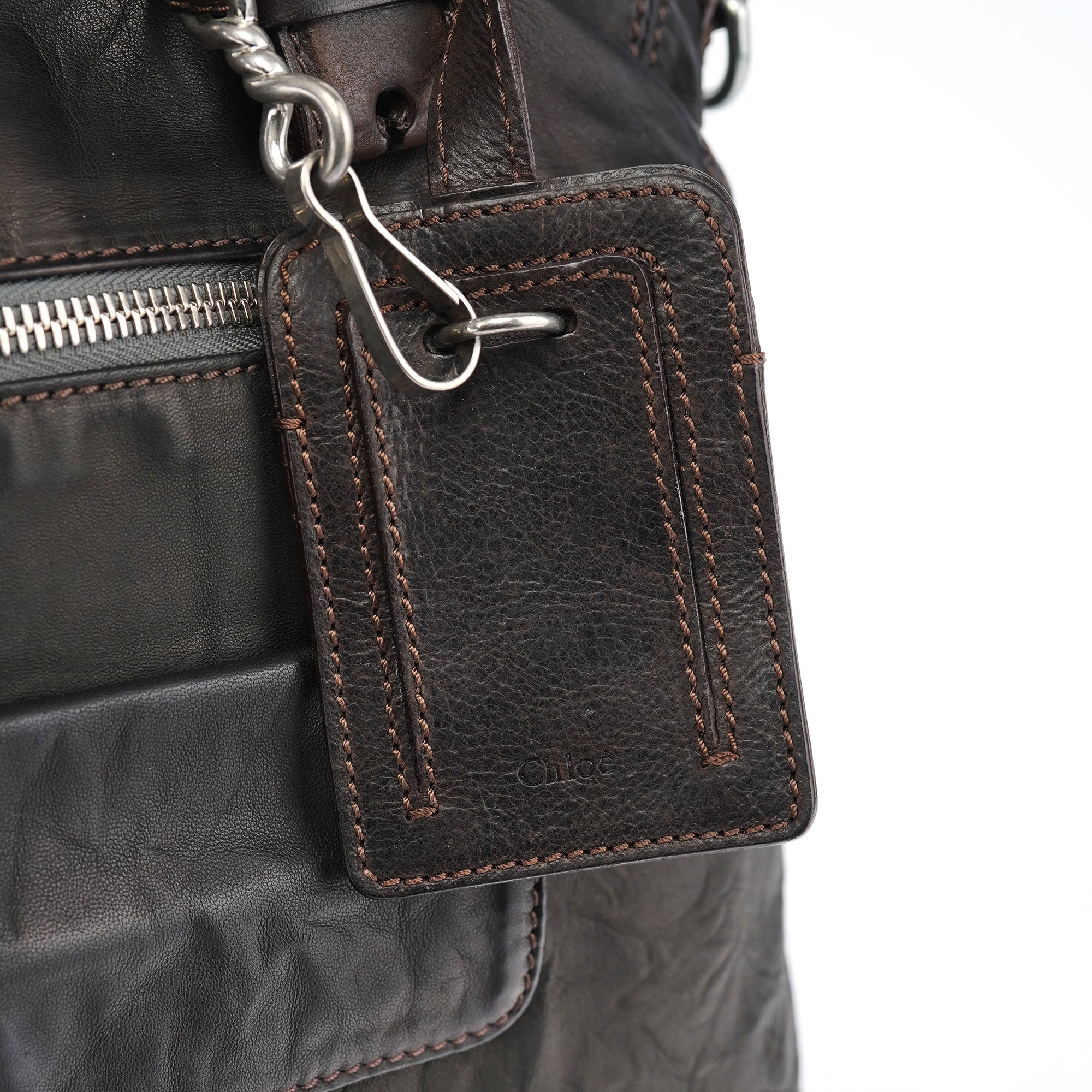 Designed in the early 2000s by Phoebe Philo, this vintage Chloé tote features soft brown and black lamb leather in a relaxed, unstructured silhouette. The spacious design includes a front zip pocket with leather tab detail, silver-tone hardware, dual top handles, and an adjustable shoulder strap for versatile 2-way styling.