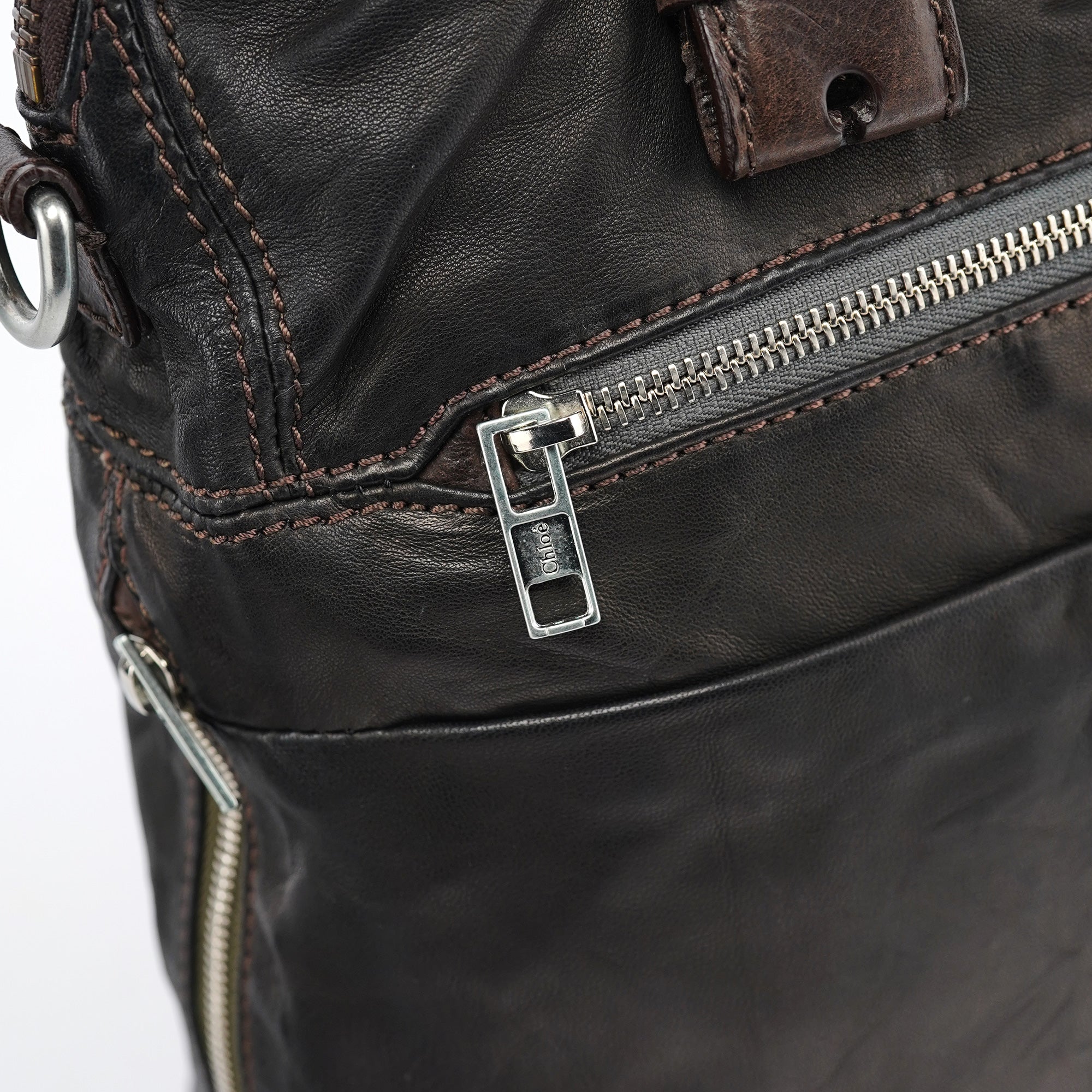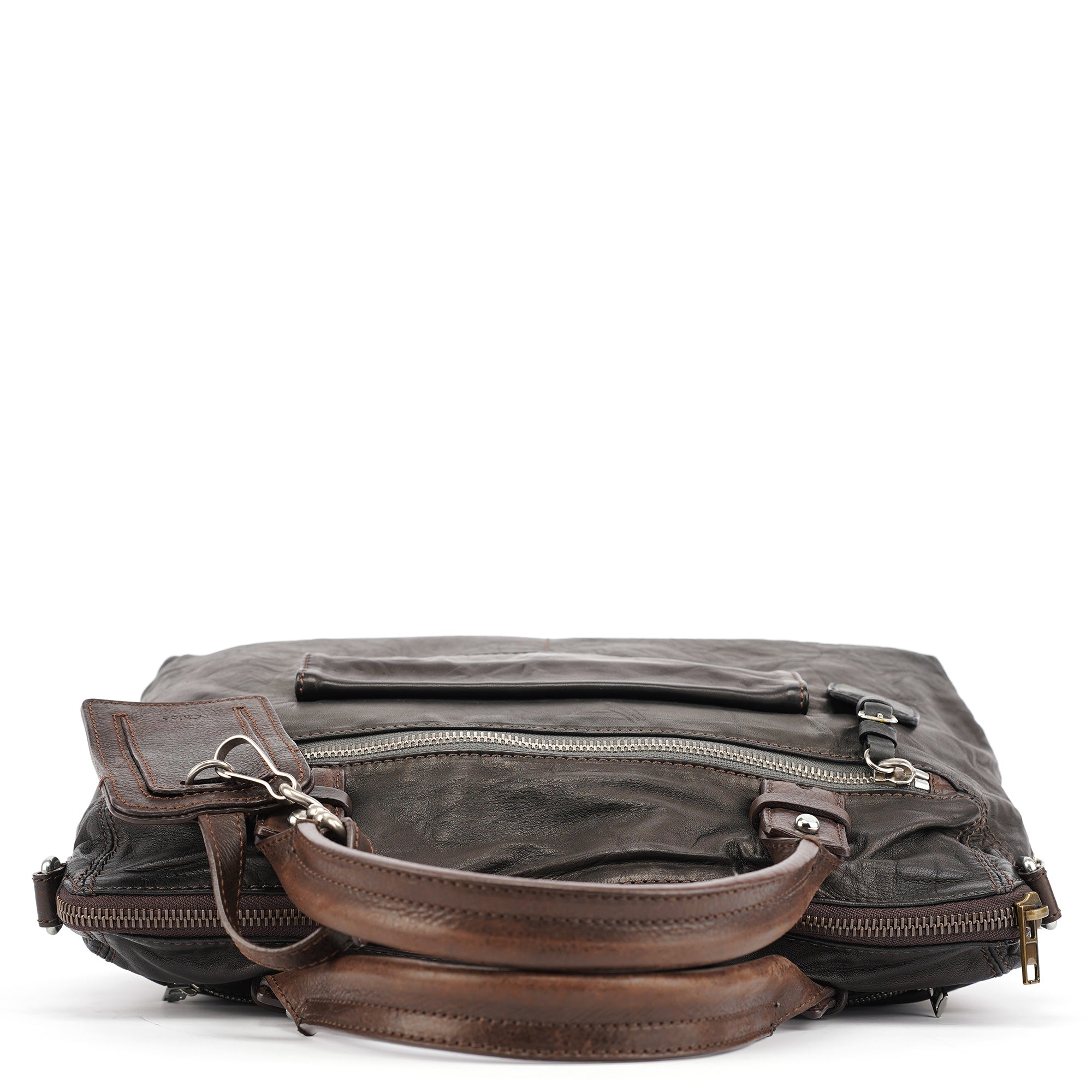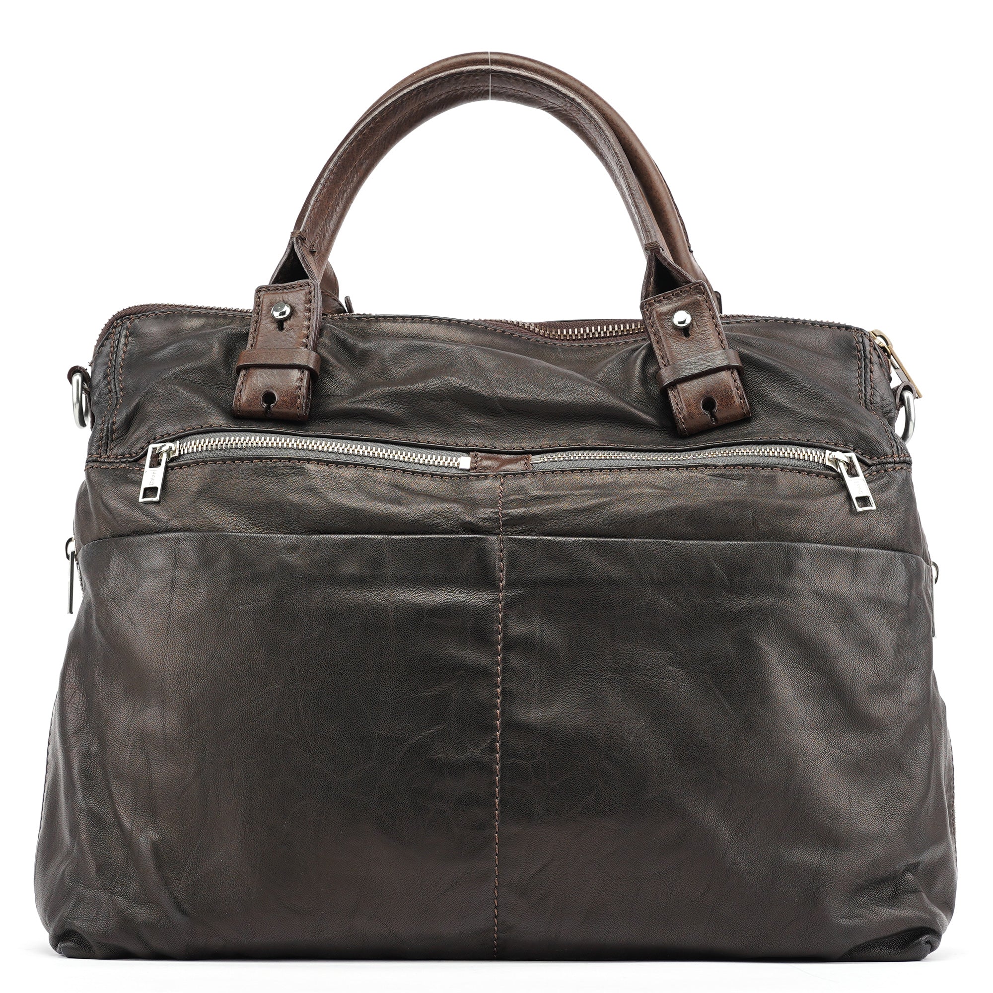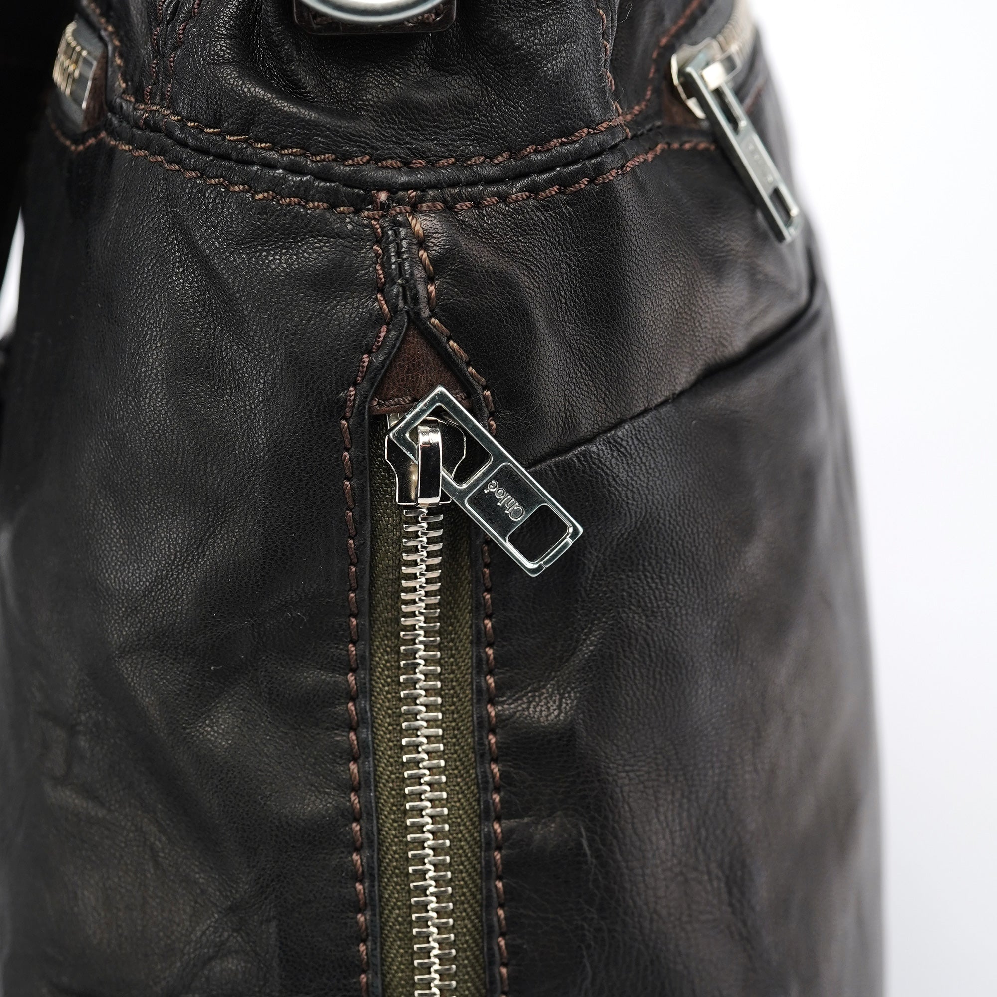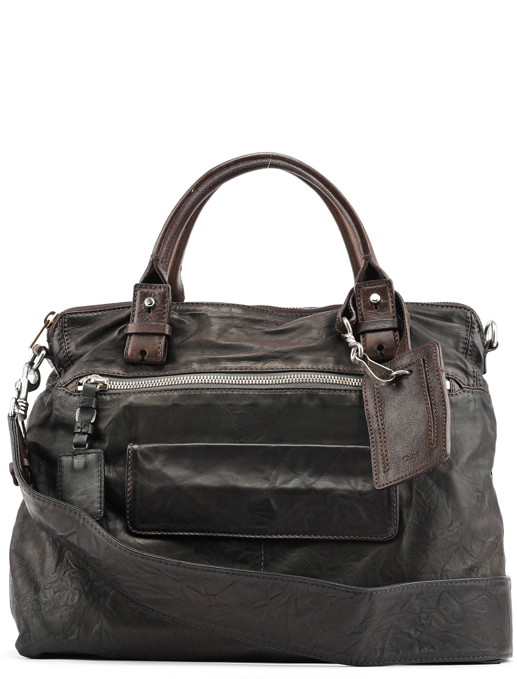Designed in the early 2000s by Phoebe Philo, this vintage Chloé tote features soft brown and black lamb leather in a relaxed, unstructured silhouette. The spacious design includes a front zip pocket with leather tab detail, silver-tone hardware, dual top handles, and an adjustable shoulder strap for versatile 2-way styling.