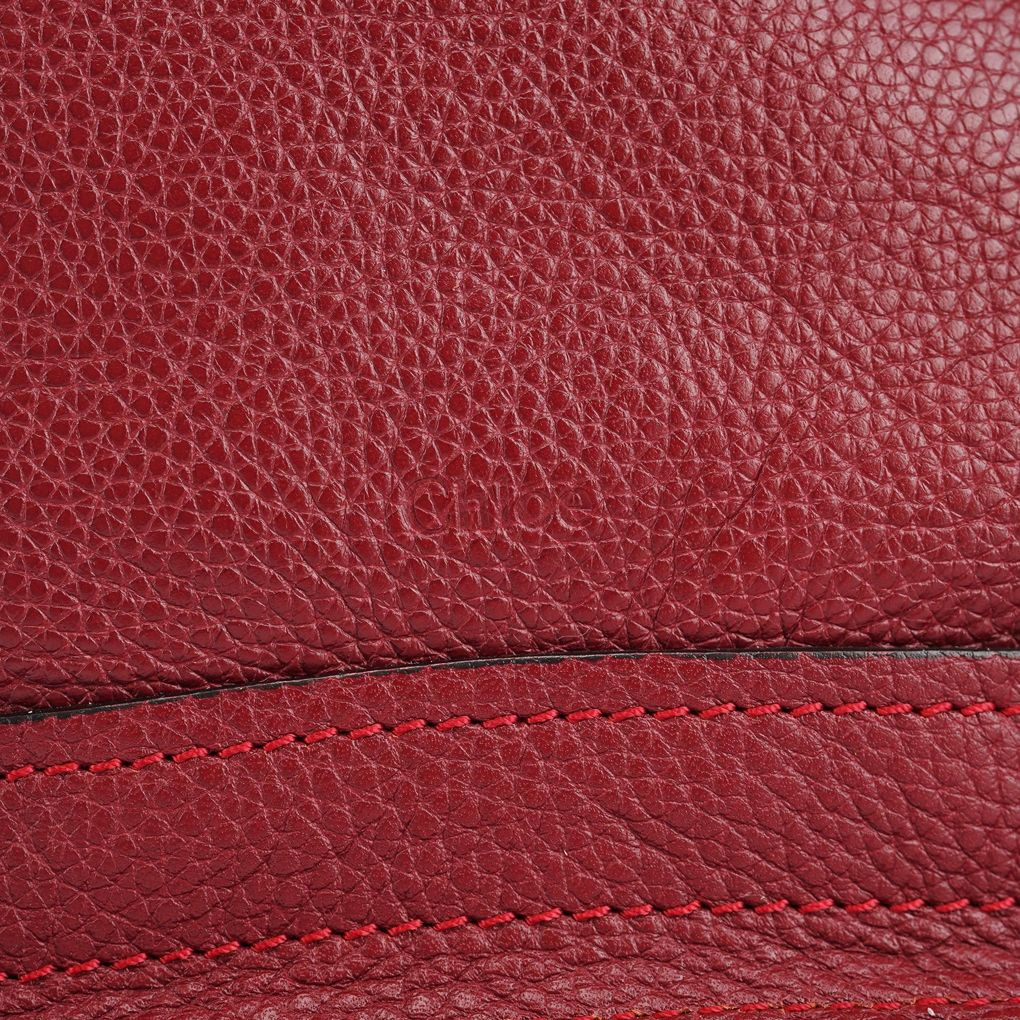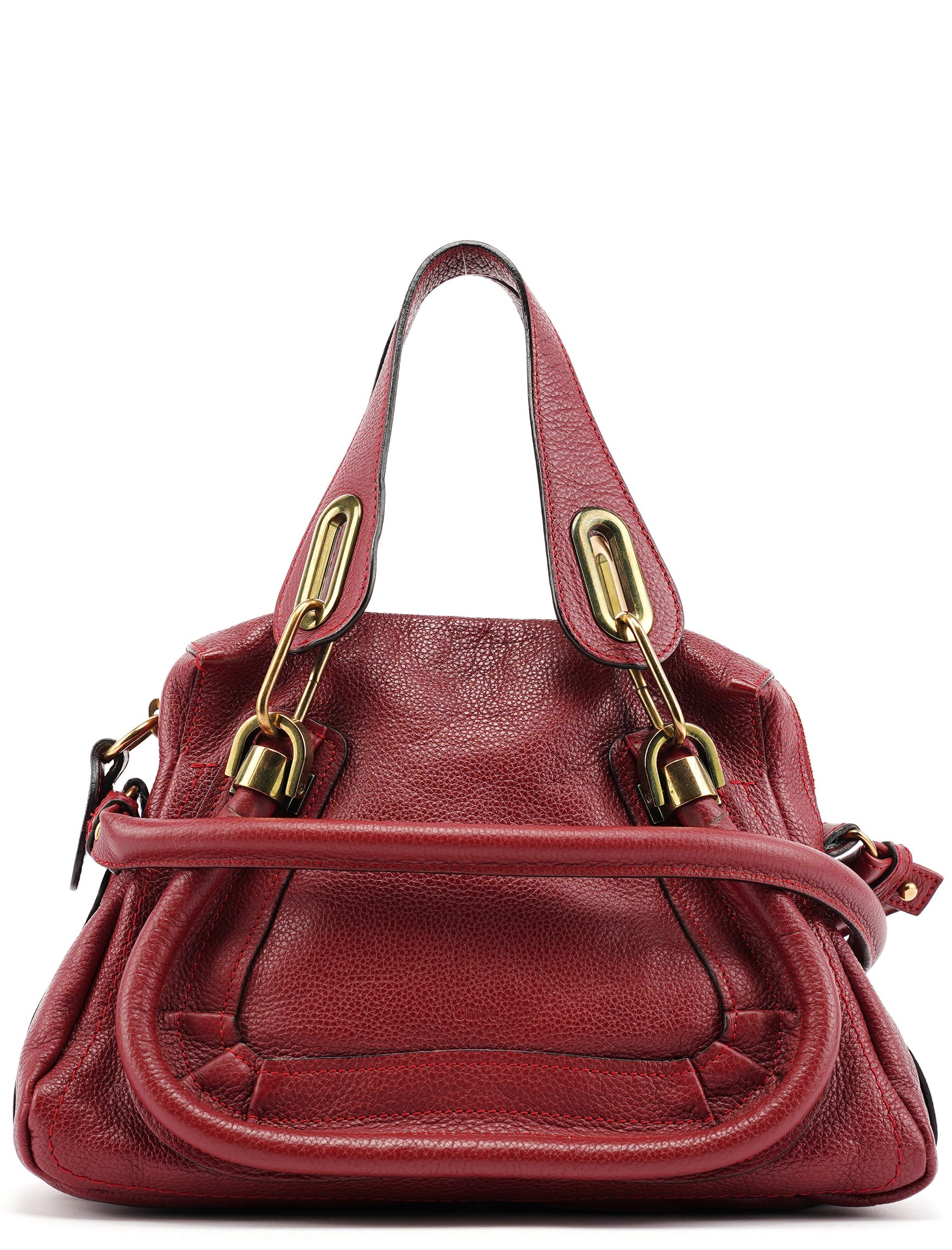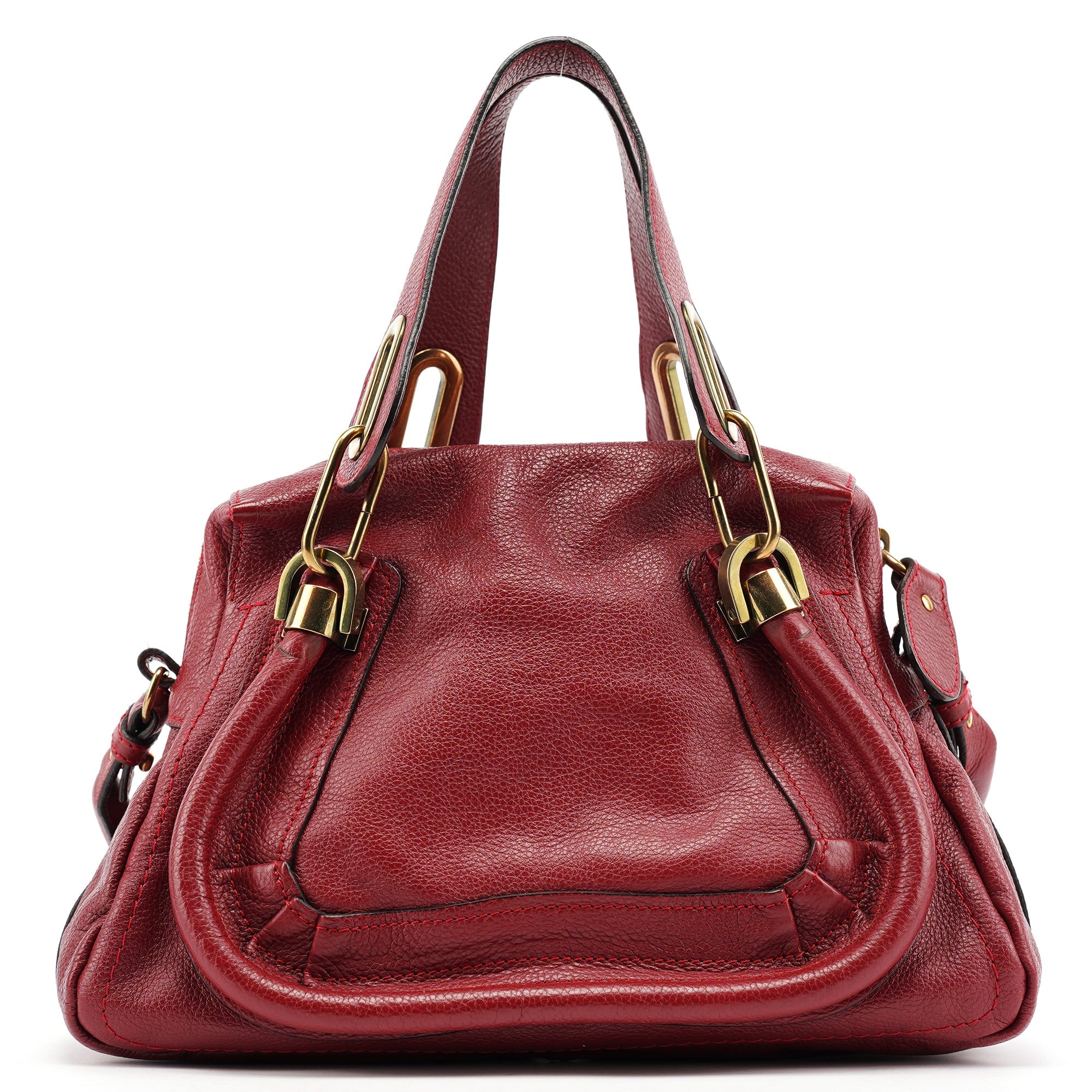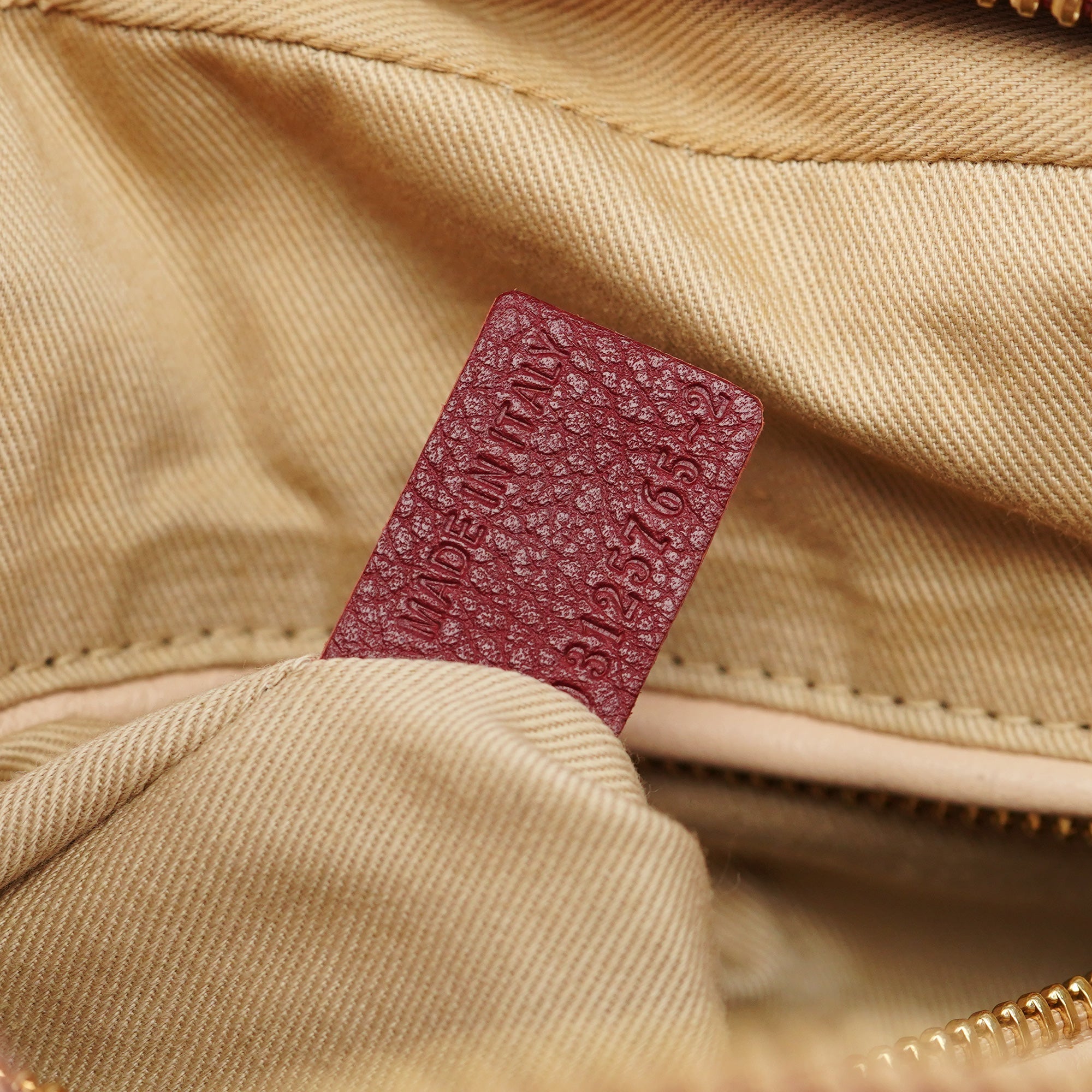 Designed in the late 2000s by Hannah McGibbon, this Chloé Paraty bag is crafted in rich burgundy leather with gold-tone hardware. The structured yet slouchy silhouette features double top handles, a detachable shoulder strap, and the signature piped trim detail. The interior is lined in beige canvas with a zip pocket for essentials.