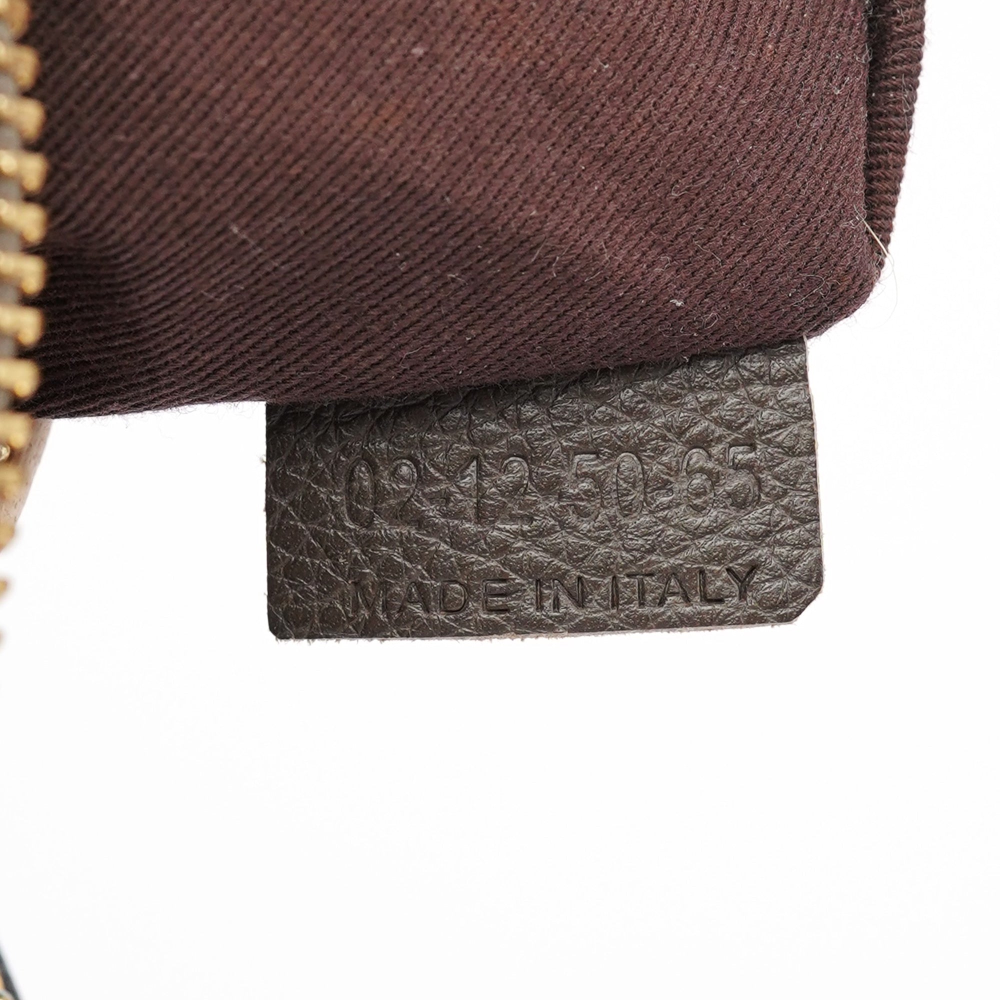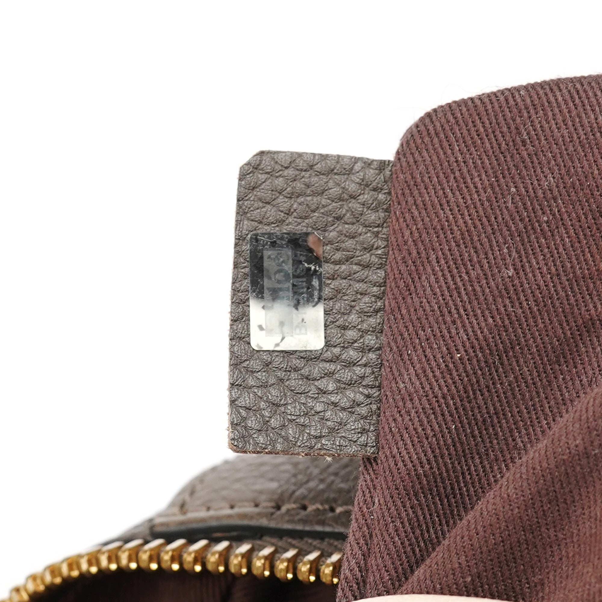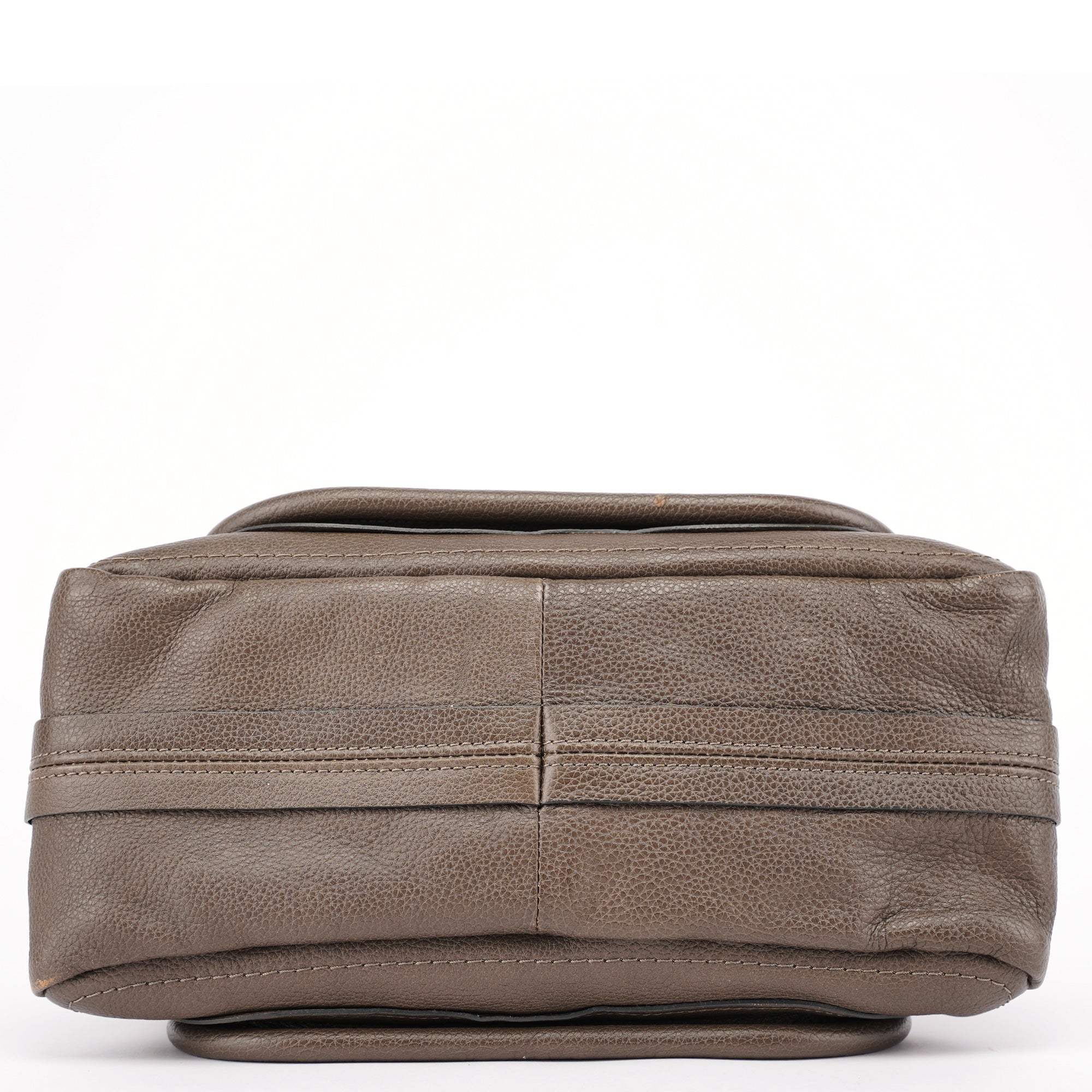 Designed in the mid-2000s by Phoebe Philo, the Chloé Paraty bag is crafted in dark grey pebbled leather with gold-tone hardware and a structured trapezoidal shape. It features the line’s signature double rolled handles, side strap loops, and rounded piping, along with a removable leather shoulder strap. The zip-top opens to a canvas-lined interior with a single zip pocket.