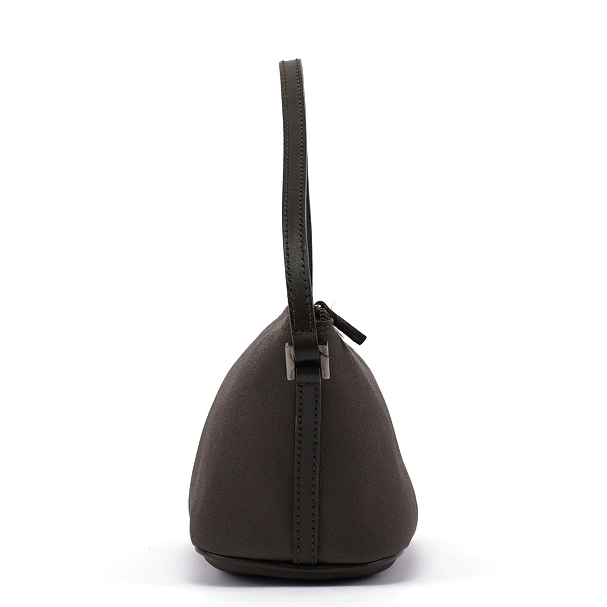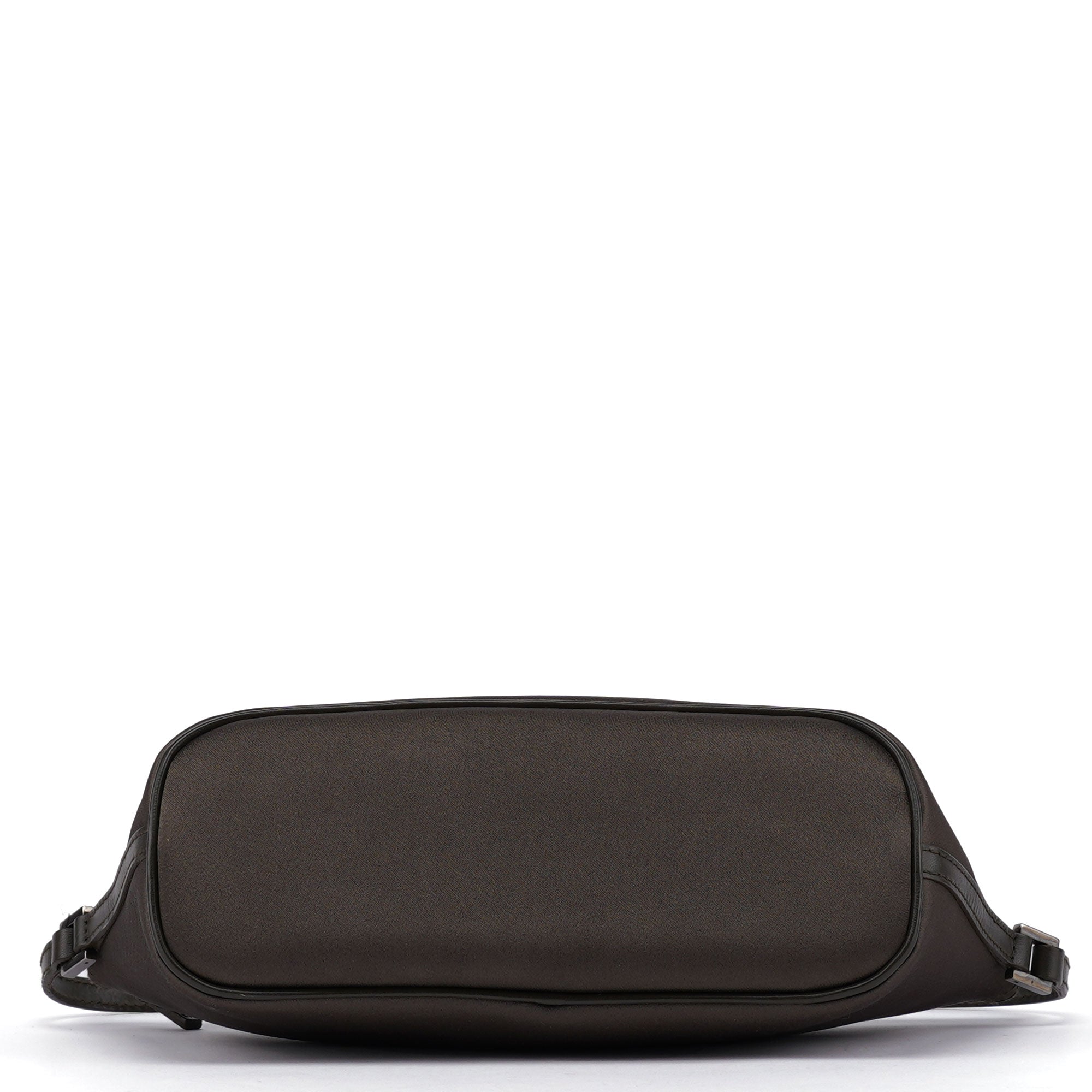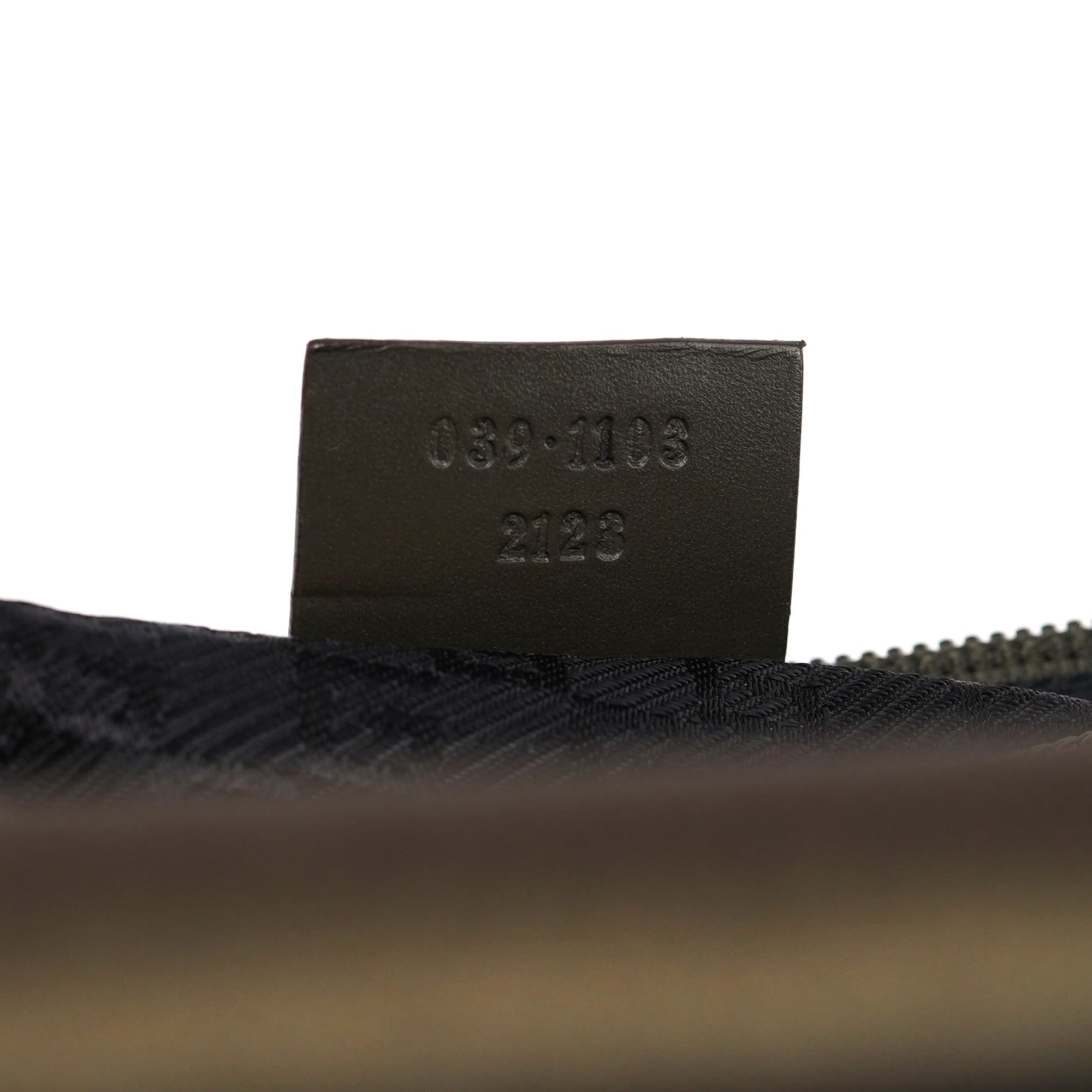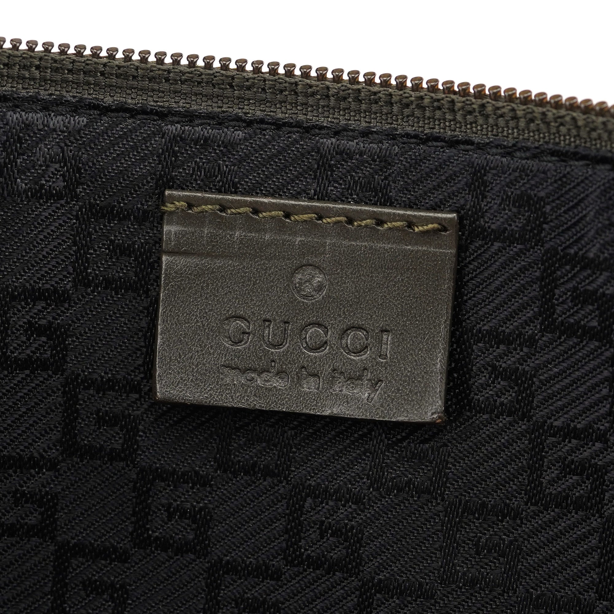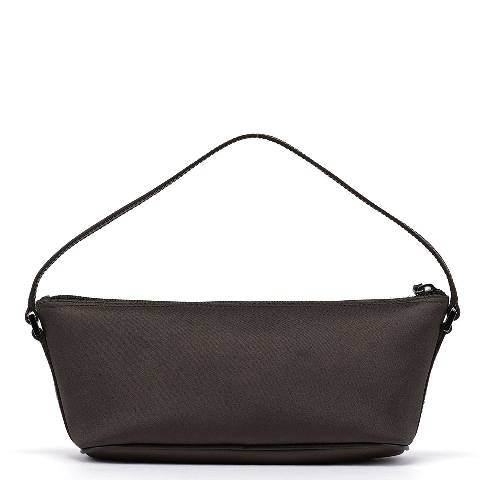 Explore timeless elegance with the Gucci boat pochette by Tom Ford, circa late 1990s. This exquisite piece combines olive green satin with tonal calfskin leather trim and silver-tone hardware. Its secure zip closure and satin-lined interior offer luxury and practicality, while the subtle Gucci plaque adds a touch of heritage. A perfect blend of vintage charm and sophistication.