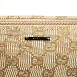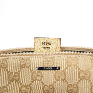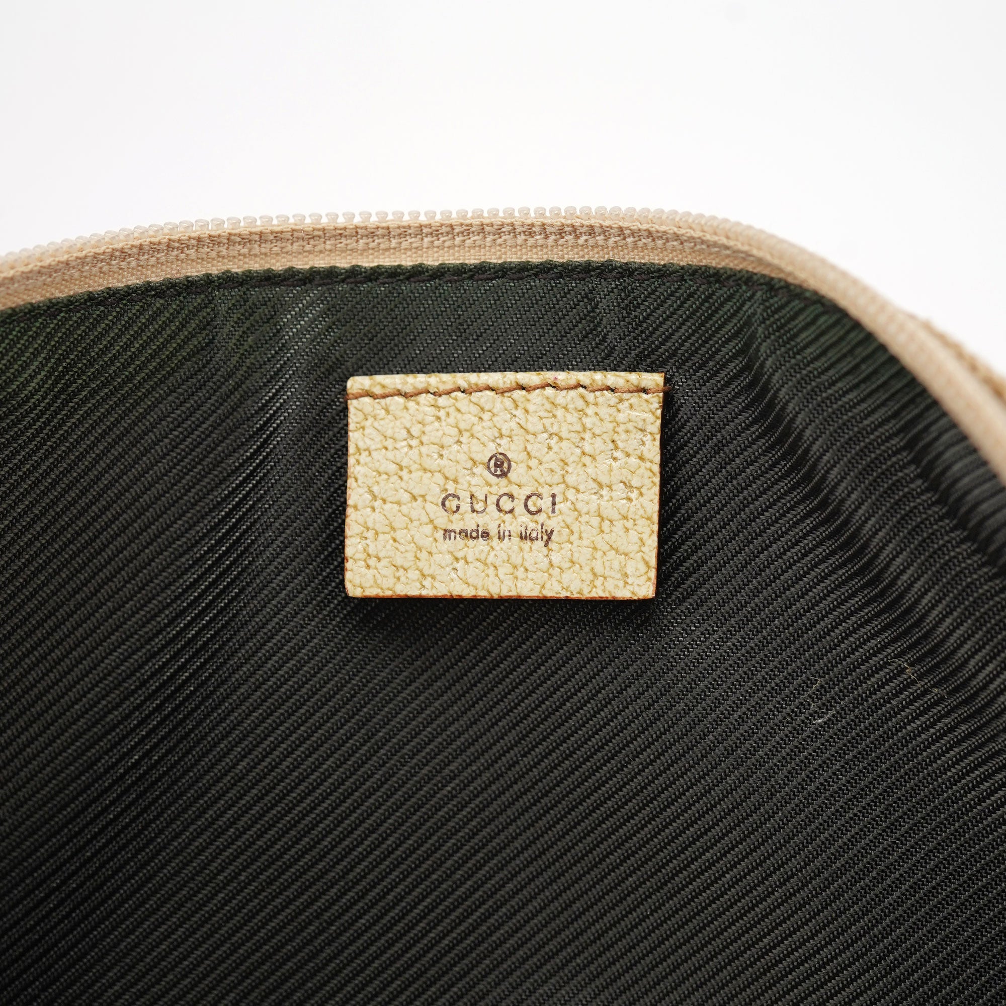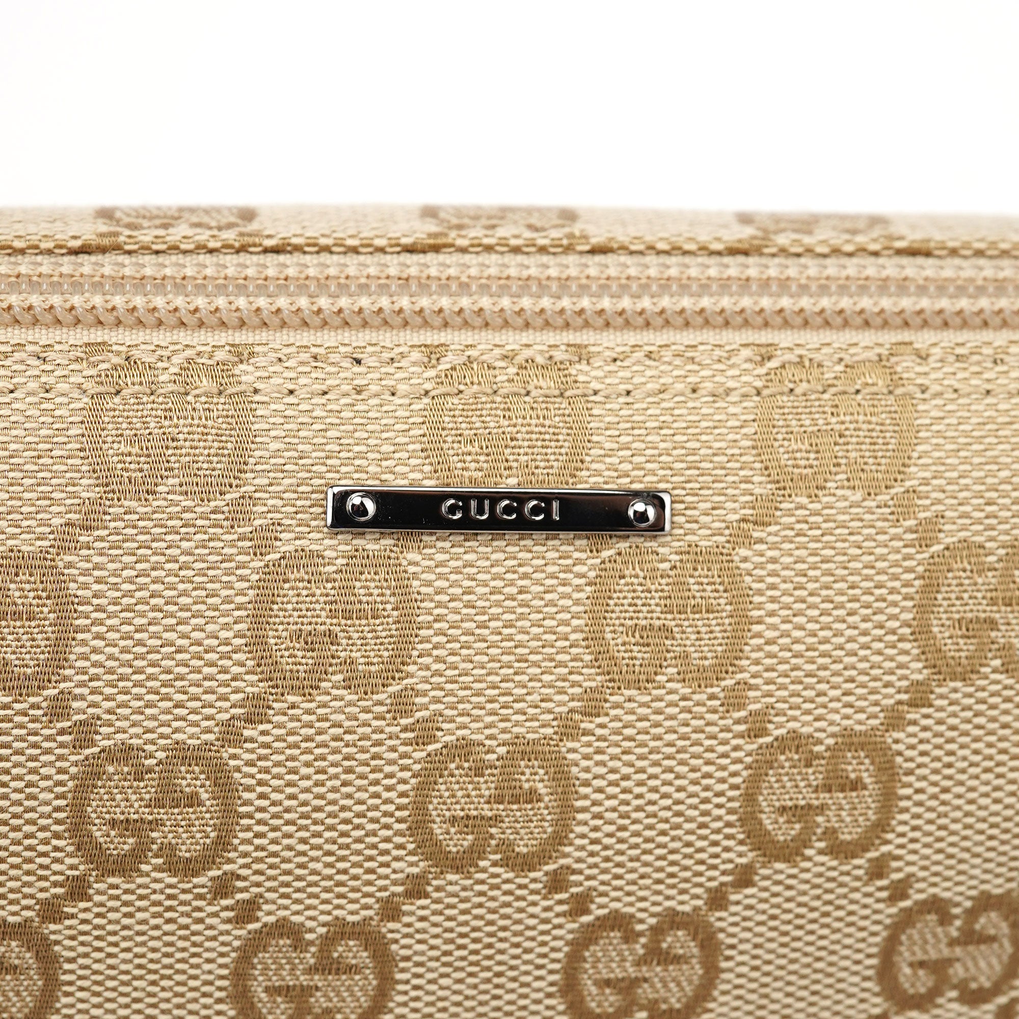 Explore timeless elegance with the Gucci GG Boat Pochette by Tom Ford, circa late 1990s. This exquisite piece combines beige GG canvas with tonal leather trim and silver-tone hardware. Its secure zip closure and satin-lined interior offer luxury and practicality, while the subtle Gucci plaque adds a touch of heritage.