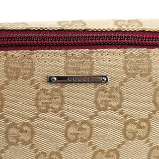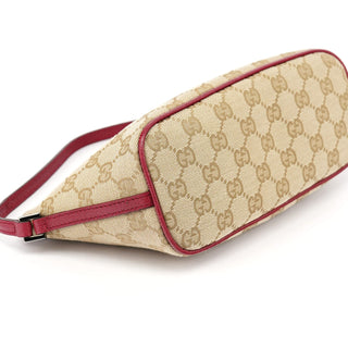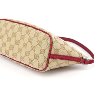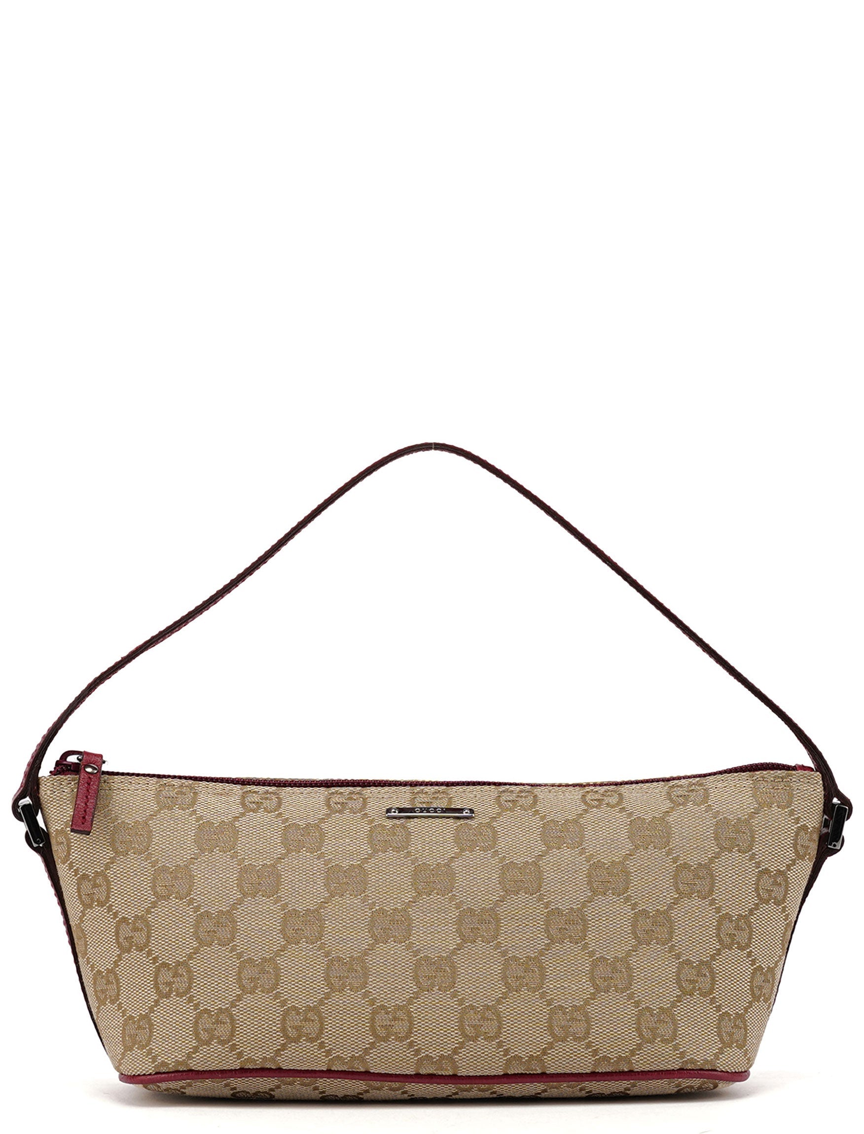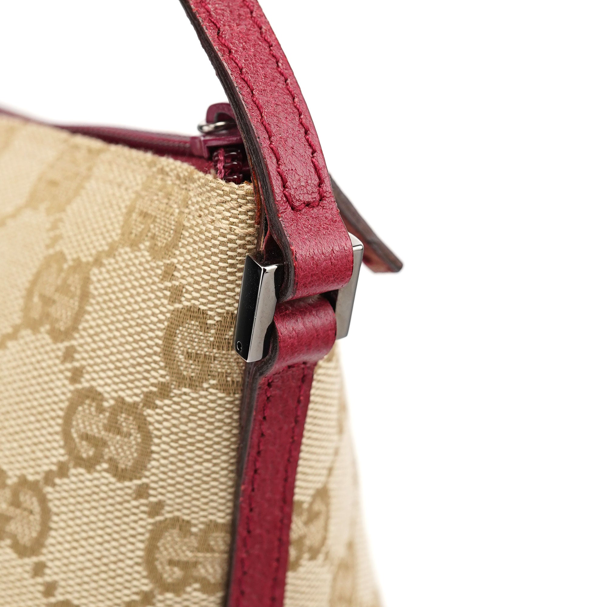 Explore timeless elegance with the Gucci GG Boat Pochette by Tom Ford, circa late 1990s. This exquisite piece combines beige GG canvas with red leather trim and silver-tone hardware. Its secure zip closure and satin-lined interior offer luxury and practicality, while the subtle Gucci plaque adds a touch of heritage.
