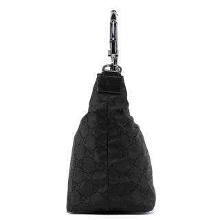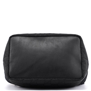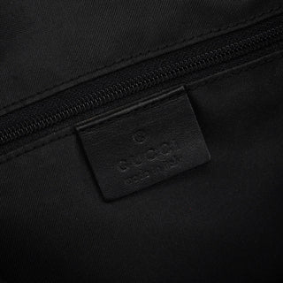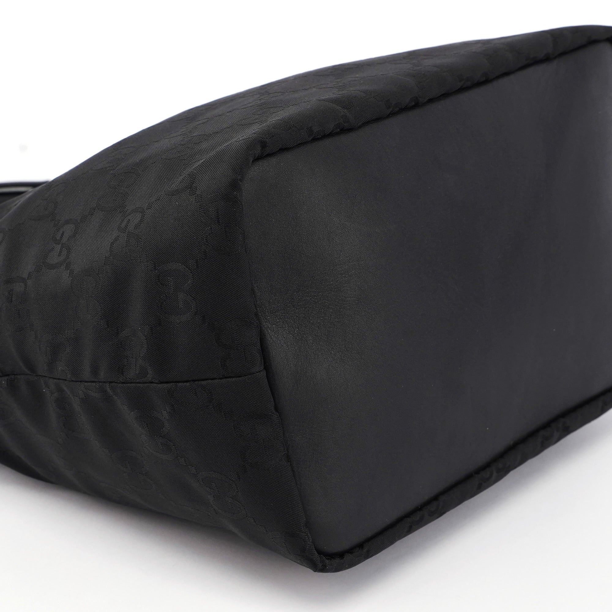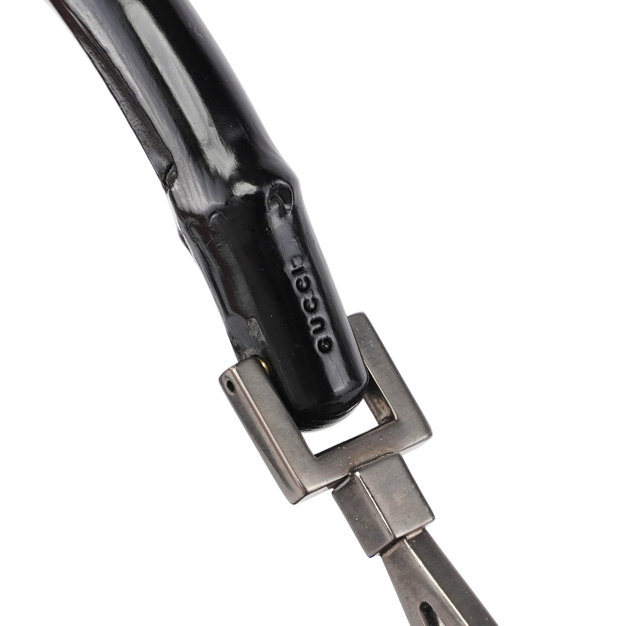 This Gucci Bamboo shoulder bag, designed in the late 1990s by Tom Ford features bamboo handle, the black GG monogram canvas, silver-tone hardware, and tonal leather trim. The bag's spacious zipper-closed compartment is lined with satin and includes an interior zipper pocket.