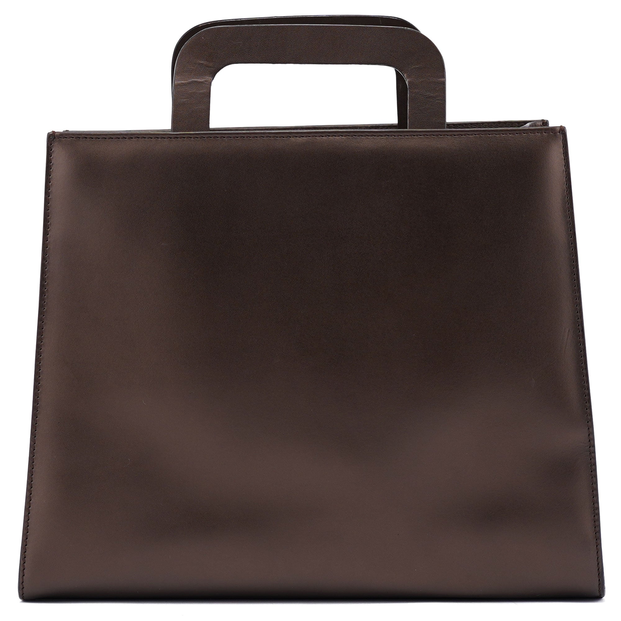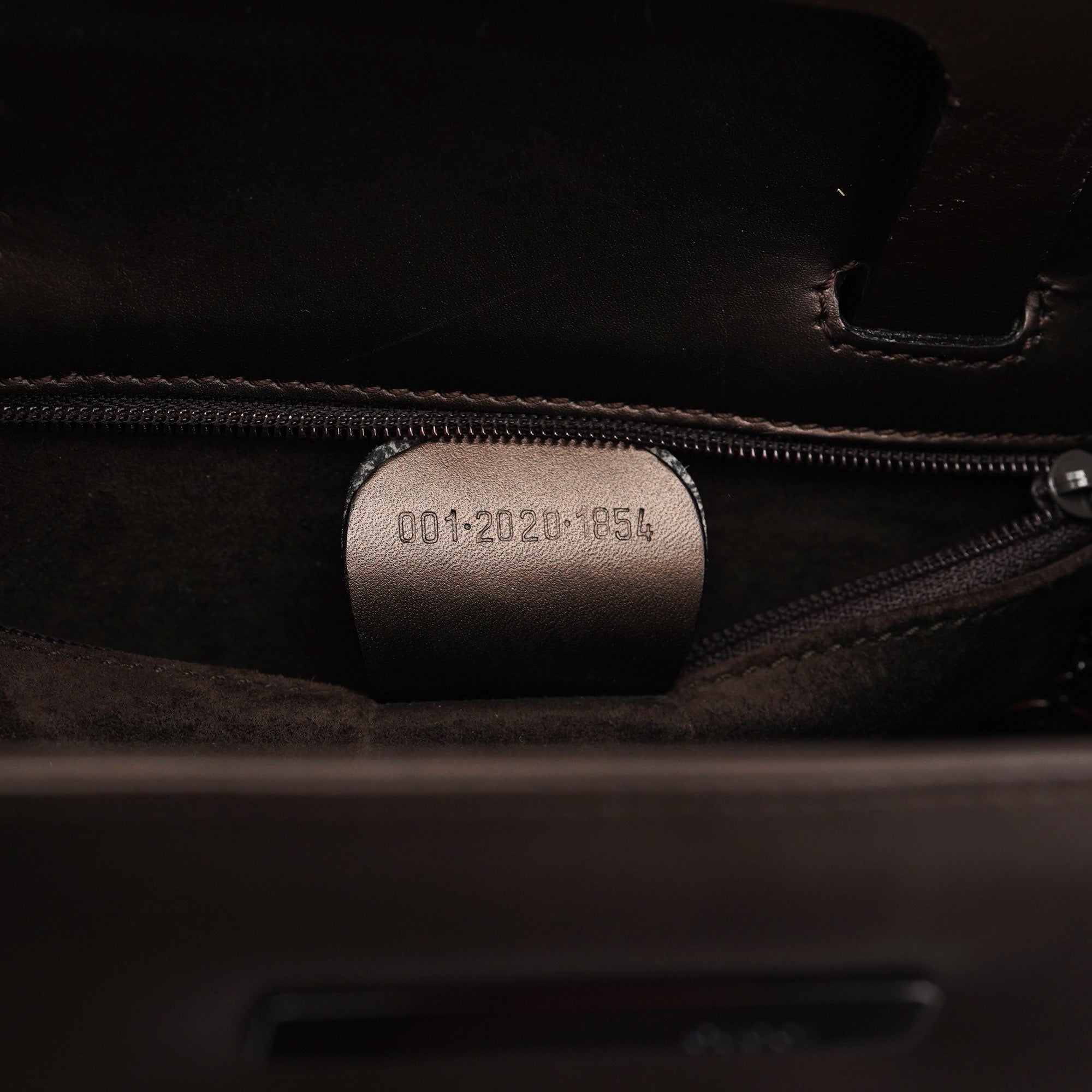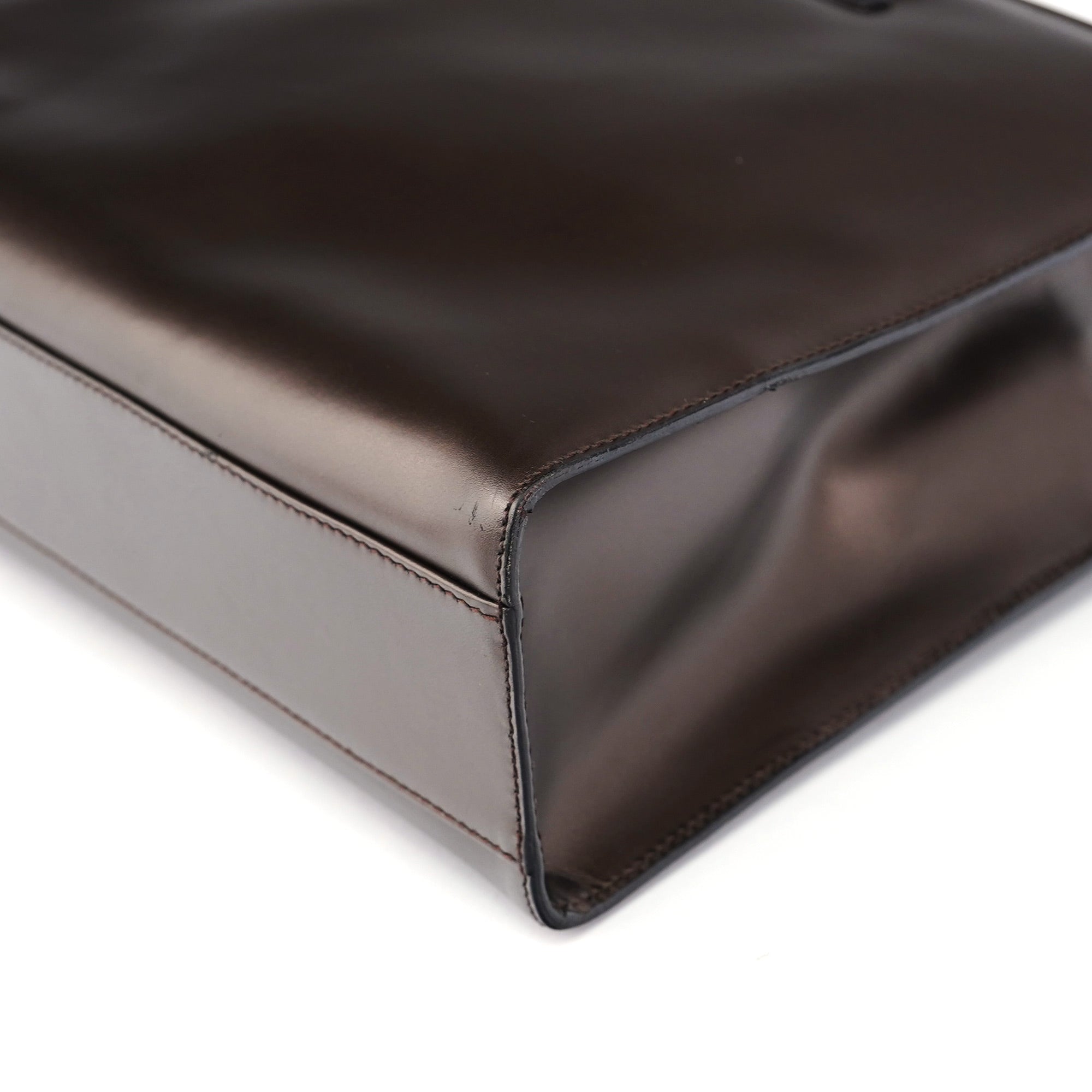 Designed by Tom Ford in the late 1990s, this Gucci 2-way tote bag is handcrafted in bronze leather and features a Gucci logo plate at the front with gloss anthracite hardware for a polished look. Designed with retractable handles and a detachable shoulder strap, it offers versatile carrying options. The interior houses a zipper pocket, ensuring essentials are kept secure and organized.