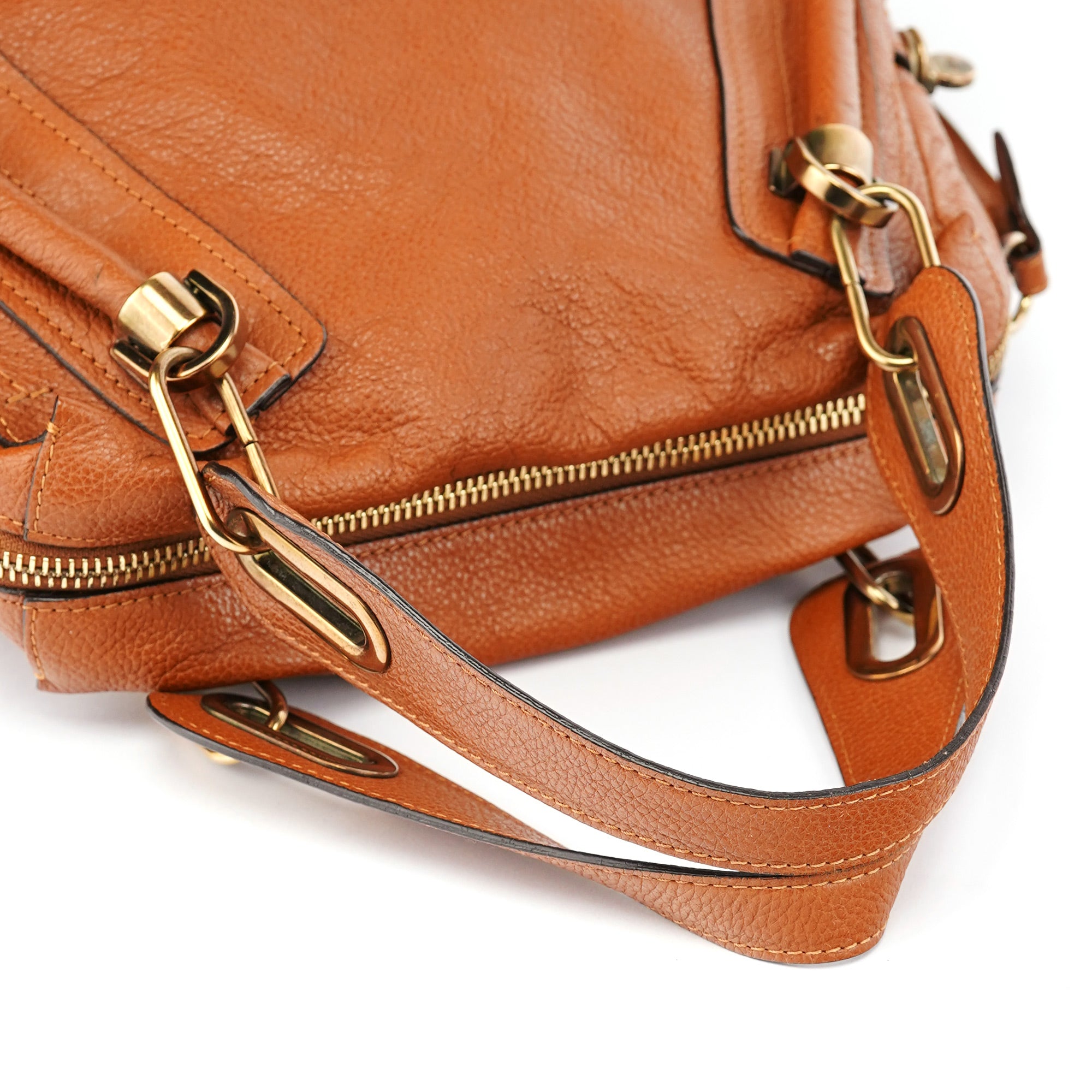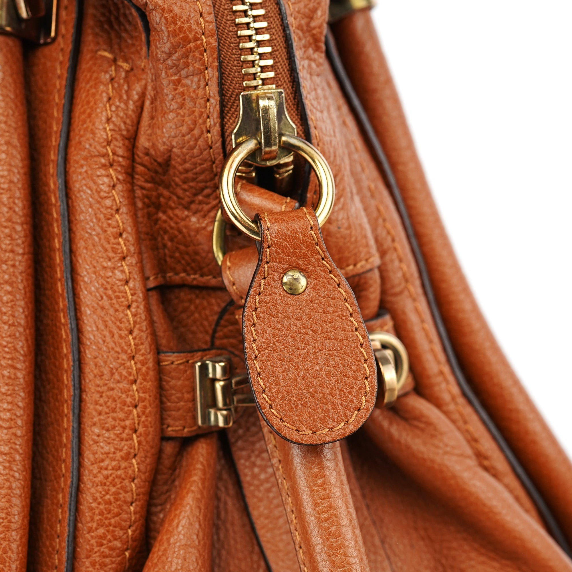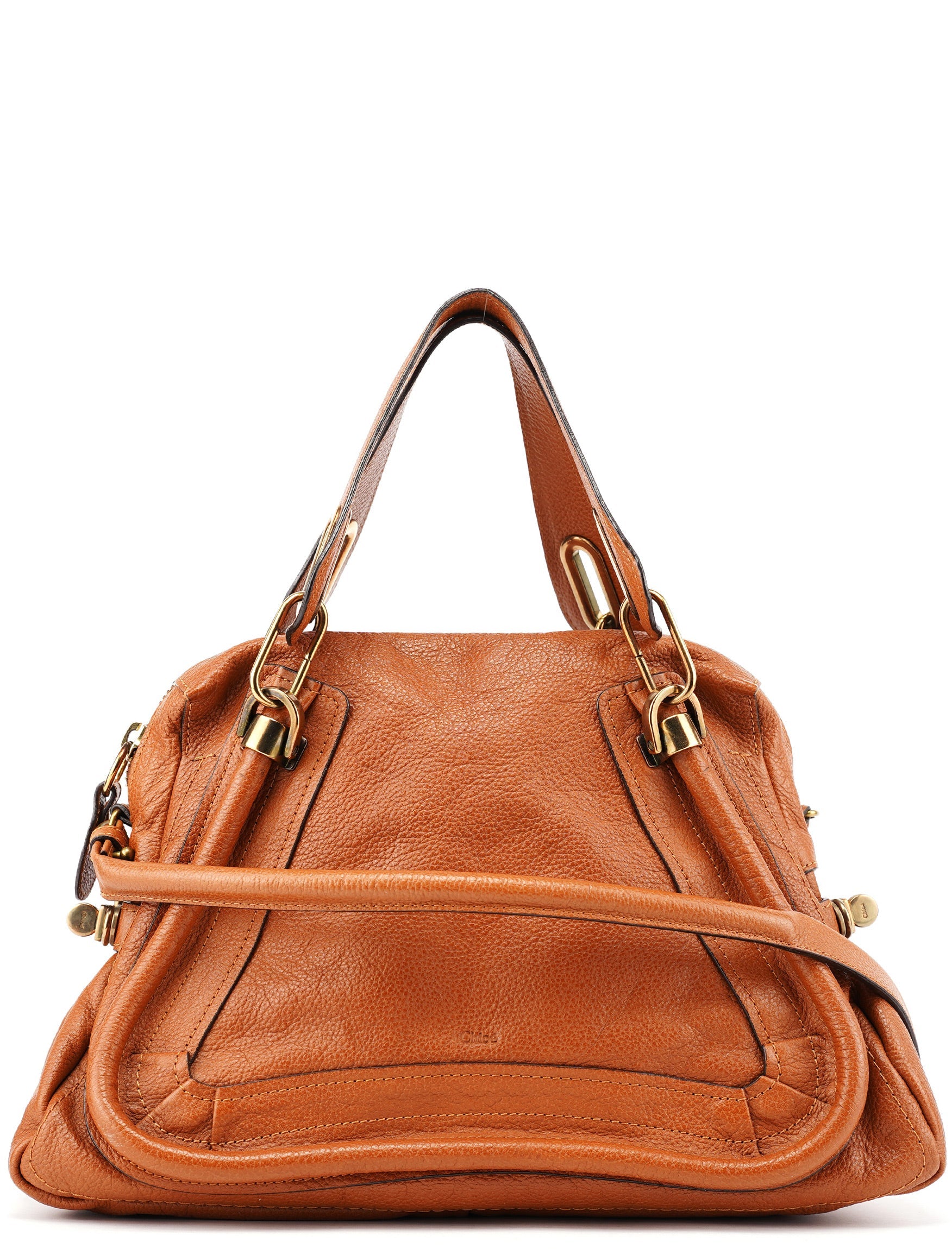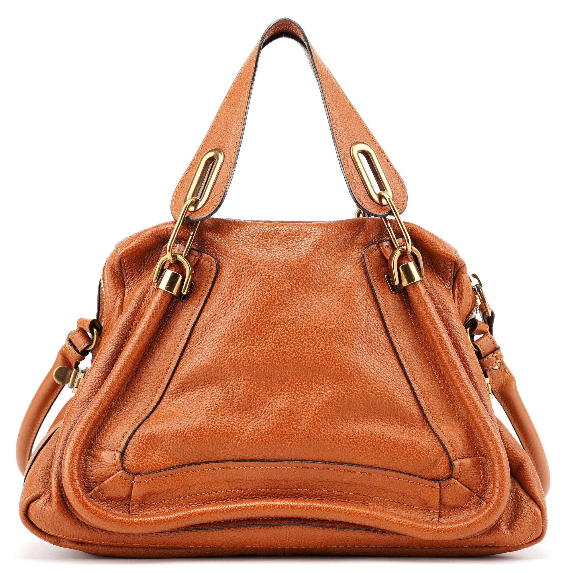 Designed by Hannah MacGibbon in 2008, the Chloé Paraty bag became an instant classic with its triangular structure, soft leather, and signature piped edges. Featuring gold-tone hardware, rolled leather handles, and a detachable shoulder strap, it balances style with functionality. A spacious, zippered interior completes this timeless design, embodying Chloé's refined, bohemian elegance.
